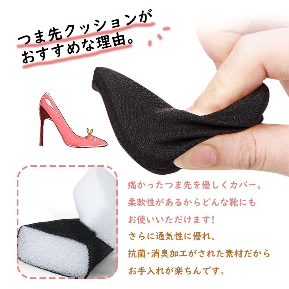 サムコス つま先クッション 2セット4個入り ハイヒール クッション 靴 サイズ調整 つま先 シューケア 靴脱げ対策 靴 つま先衝撃吸収 メンズ レディース (ブラック)