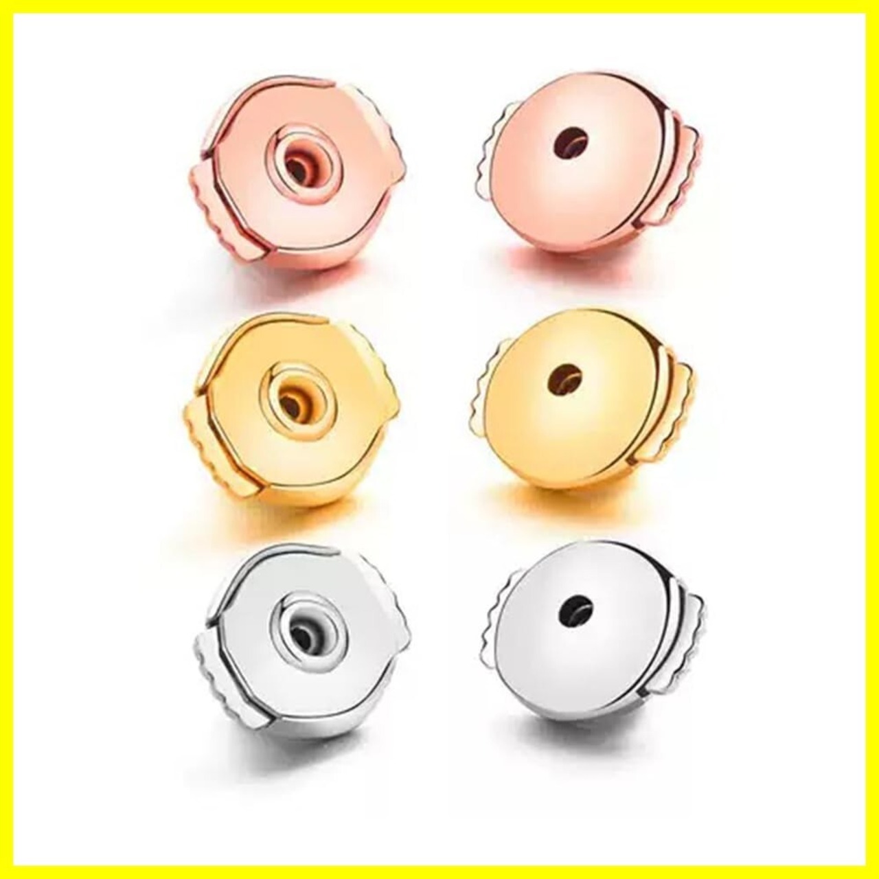 6個セット ピアス キャッチ 落ちない 金属アレルギー対応 下向き防止 両耳用 フリスビーロッククラスプ 紛失防止 シルバー+ゴールド+ローズゴールド