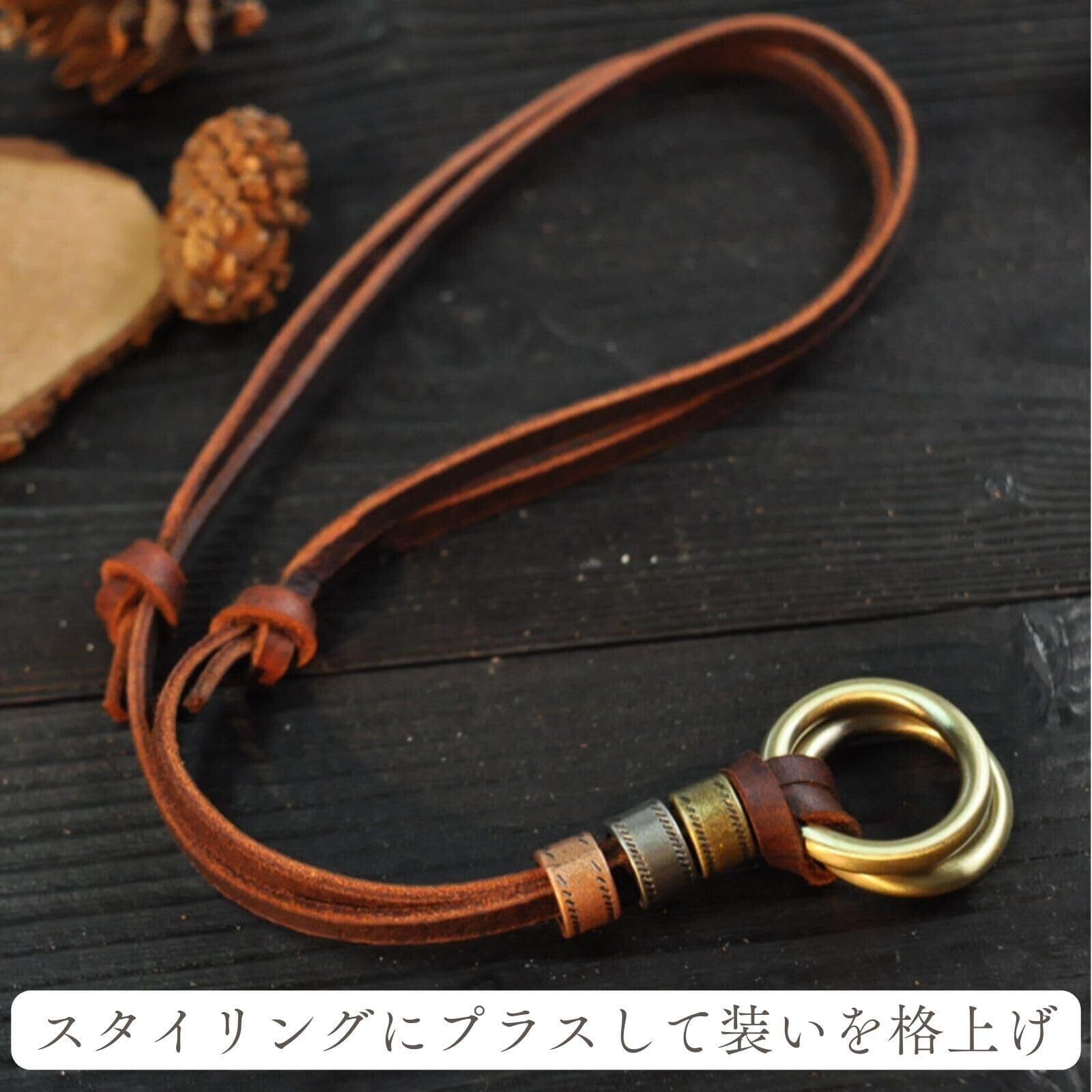 金属のリングと牛革の質感が◎ 眼鏡やサングラスがおしゃれのワンポイントに! 長さ調整も可能です!