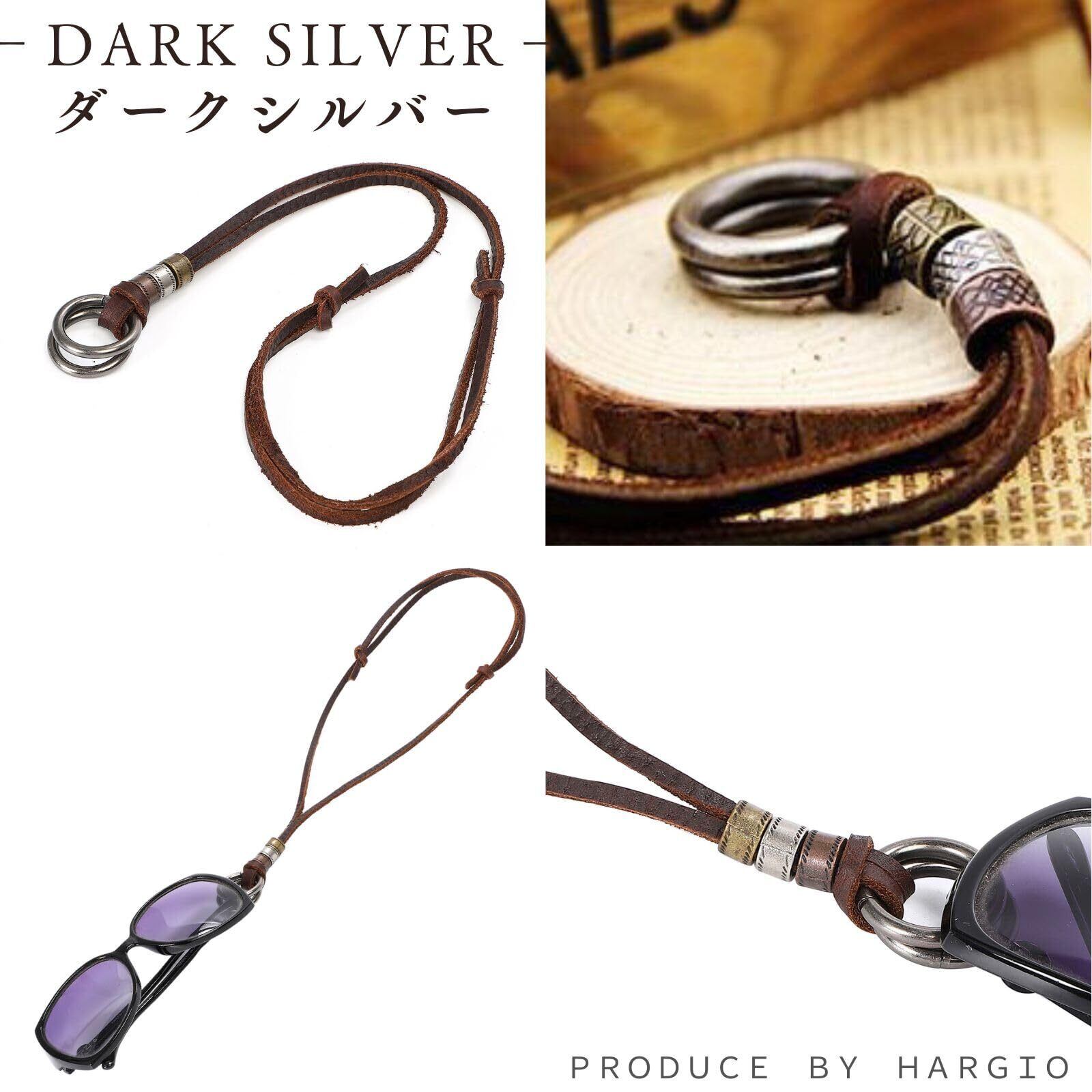 [ハルジオ] メガネホルダー ネックレス 眼鏡 サングラスホルダー メガネ サングラス メンズ レザー リング 革紐 本革 眼鏡 サングラス ストラップ メガネストラップ メンズネックレス 人気 おしゃれ シルバー ゴールド (ダークシルバー)