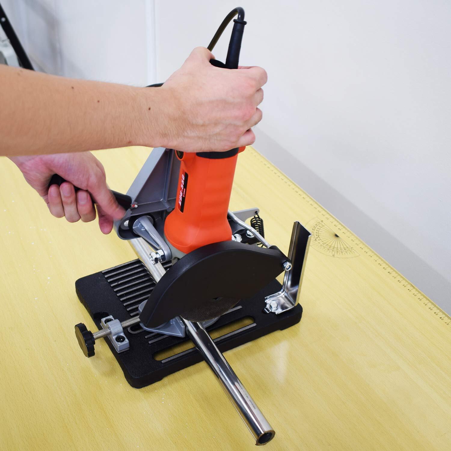 お手持ちのディスクグラインダーを取付けると簡易切断機に早変わり