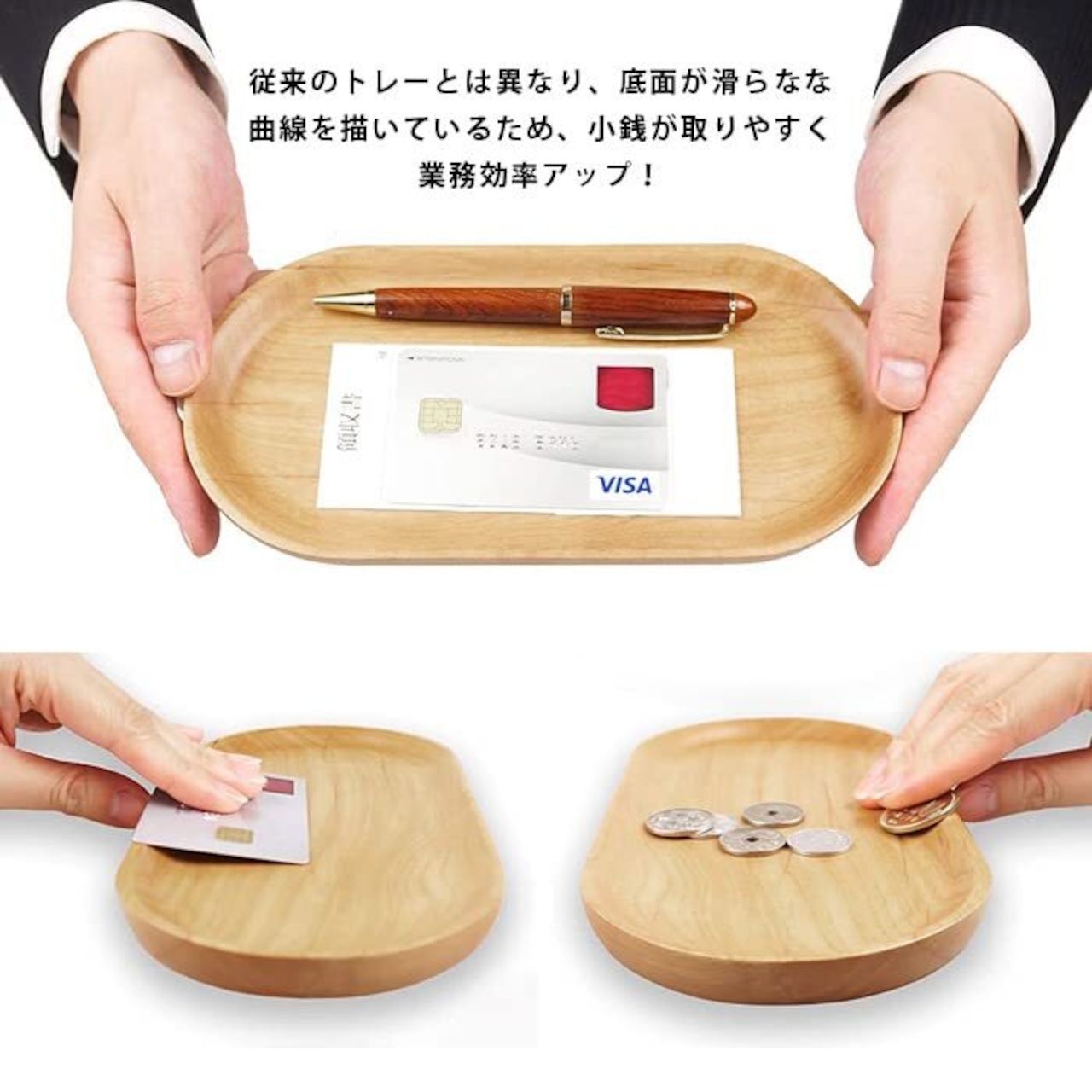 【大満足の機能性】 家の小物置きはもちろん、店でキャッシュトレーとしてもよく使えます。 会計盆、釣り銭 、ジュエリー 、小物入れ 、卓上 、アクセサリー 収納、 鍵置き、メガネ 、コイン、キャッシュトレー お会計トレーとしてはもちろん、腕時計、眼鏡、などの小物置きとしても違和感が無く、ご使用頂ける多機能の木製 トレイです。