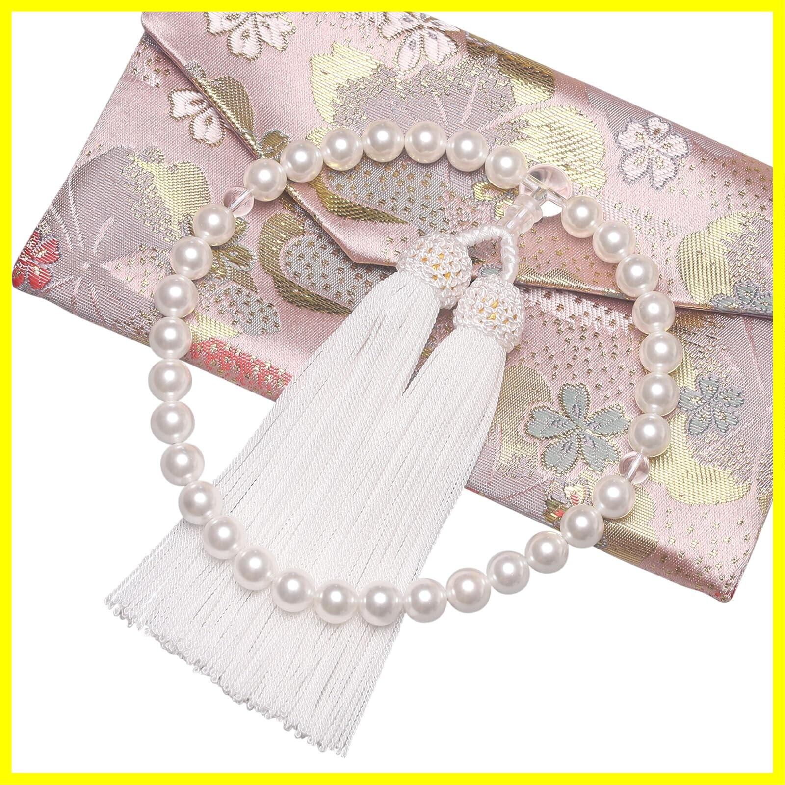 通雲念珠屋 数珠 女性用 本水晶 星月菩提樹 念珠 葬式 葬儀 お通夜 略式 じゅず 数珠袋付き すべての宗派で使える (貝パール/白)
