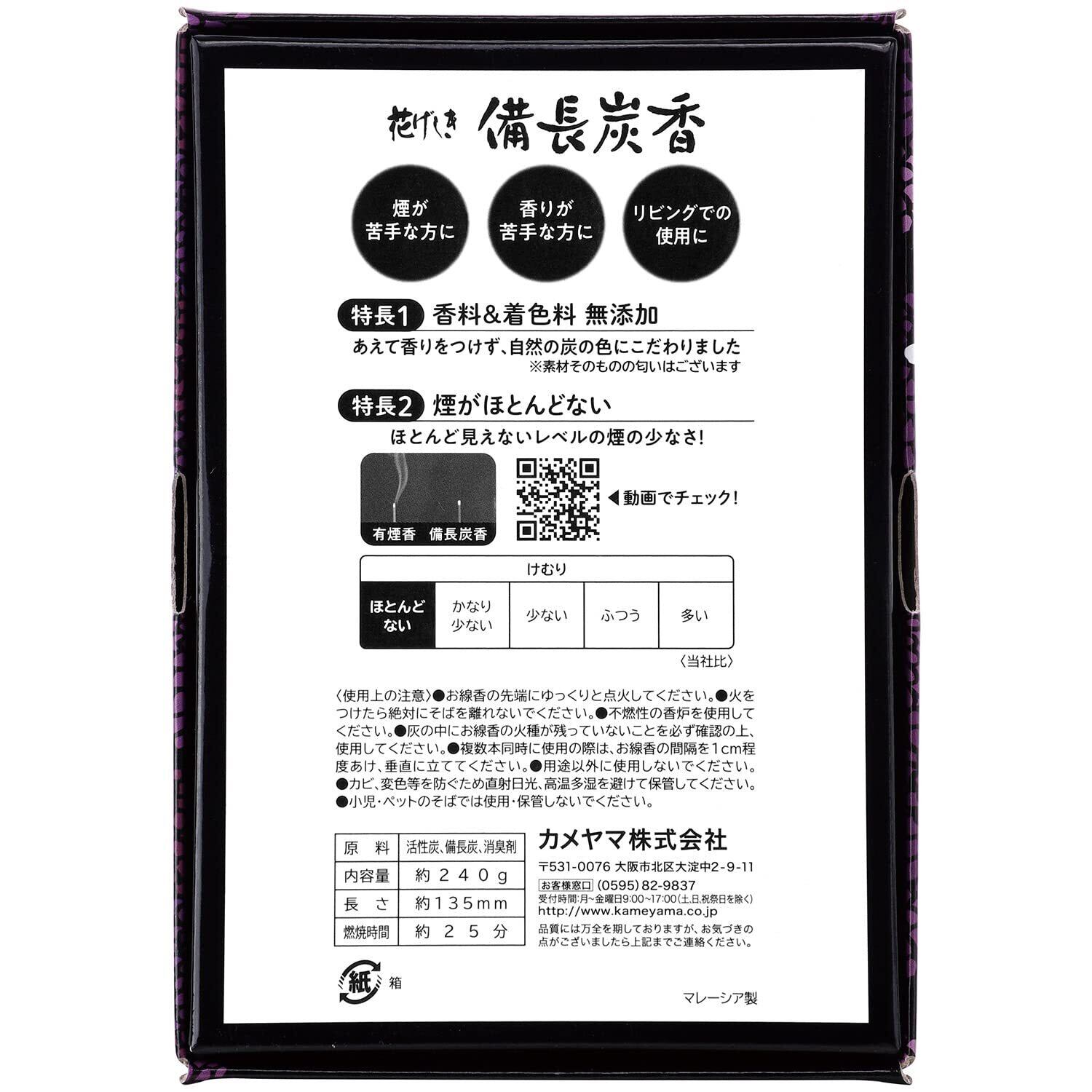 カメヤマ 花げしき 備長炭 徳用大型 約240g お線香 無香料 無着色 消臭成分配合