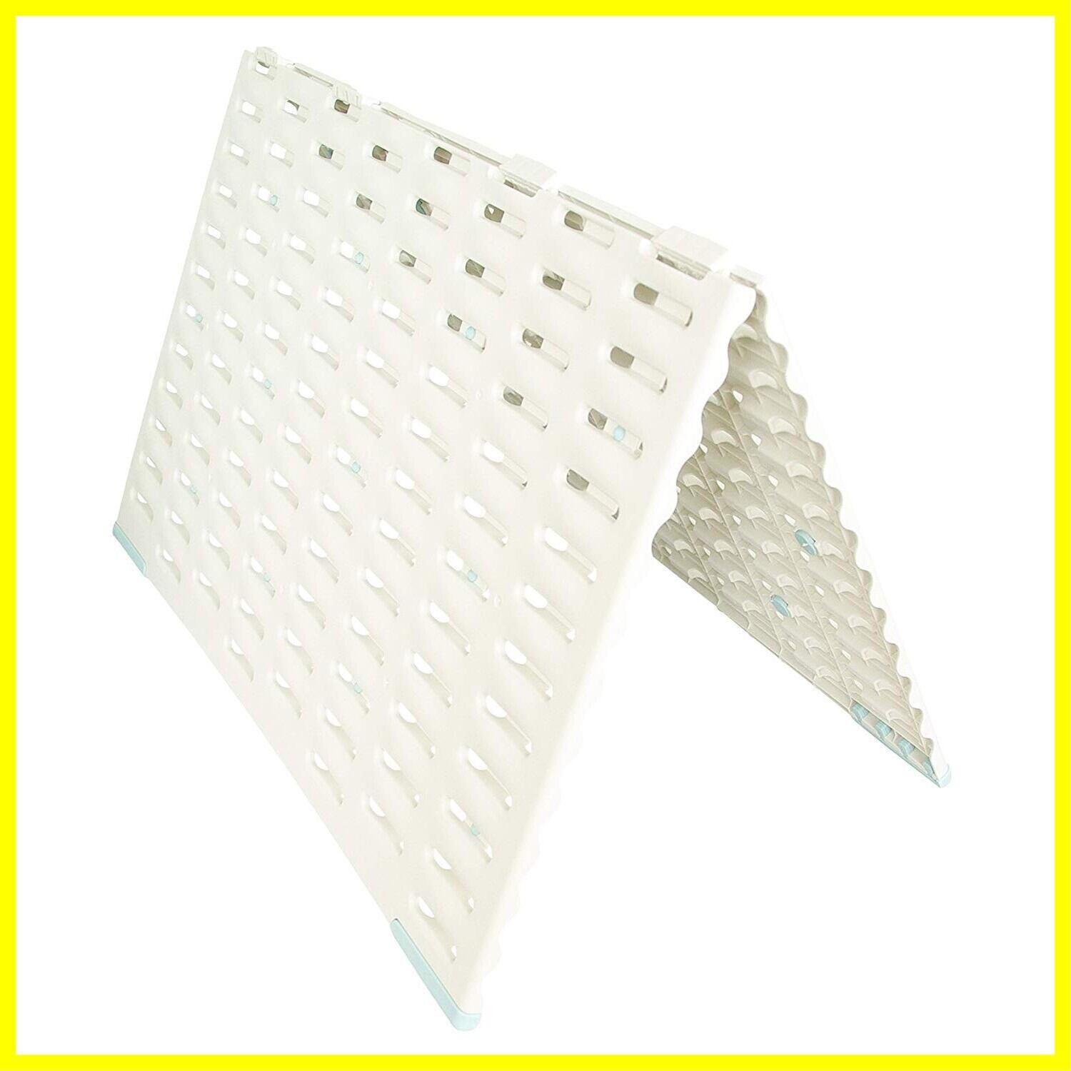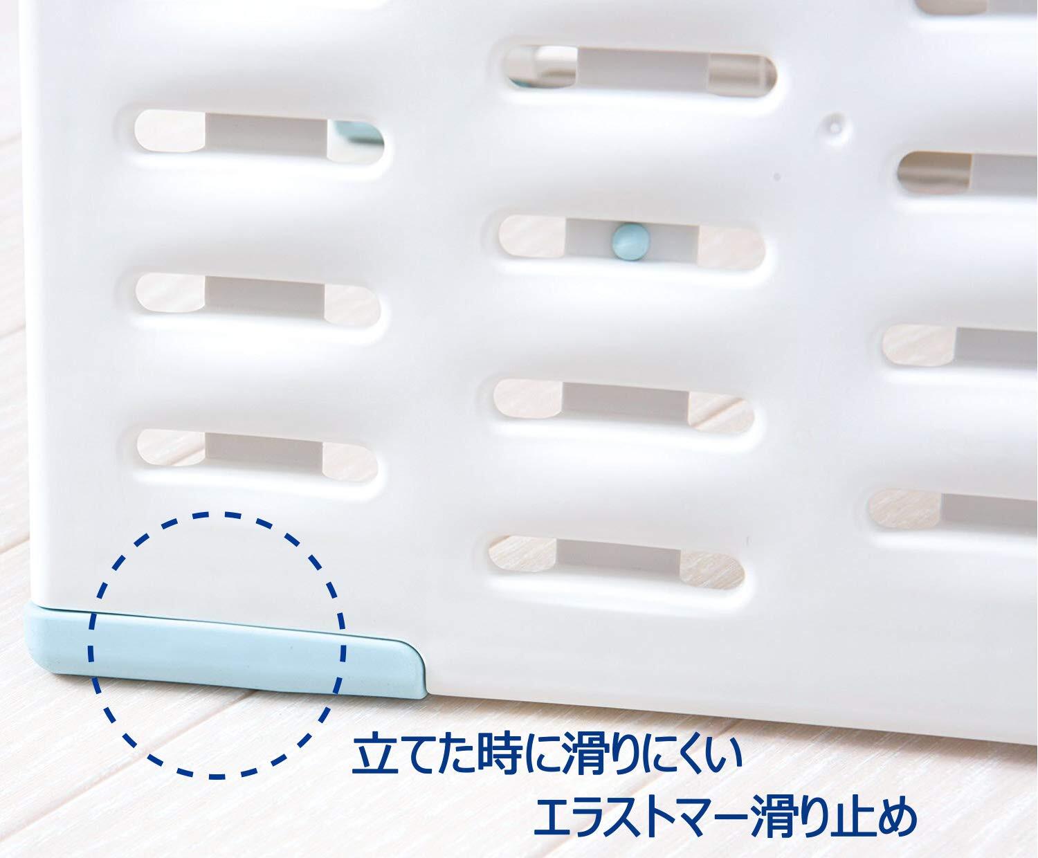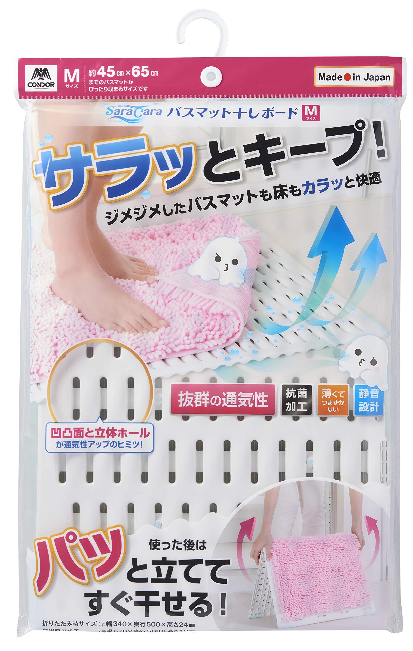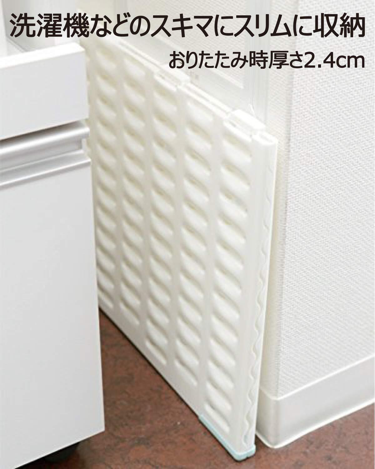 【通気性】凹凸面と立体ホールにより、優れた通気性を実現。床面を湿気から守り傷めません。カビの発生を抑制させ、清潔に保つことができます。湿気がたまりやすいバスマットが乾きやすくなるため、複数人で使用する場合でも、サラッと乾き、お風呂上りがより快適になります。【バスマットを干せる】バスマットを使い終わった後に、山型に立て干すことができるため、次に使う時も快適に使用することができます。ベランダなどに干しに行く手間を省くことができます。【薄型·軽量設計】厚み約1.2cmの薄型設計のため、つまづきにくく、脱衣所の邪魔になりにくい仕様です。また軽量のため楽に移動·持ち運ぶことができます。【滑り止め】裏面に滑り止めクッションを等間隔で配置。四つ角にグリップの効いたエラストマーの滑り止めを取付けているため、使用時にはずれにくく、踏み心地に優れます。また山型に立て、バスマットを乾かす時も、滑りにくく、倒れにくい仕様です。【収納性】使わない時は2つ折りに畳むことができるため、脱衣所の隙間など場所を取ることなく収納することができます。【耐荷重】200kg。【原産国】日本