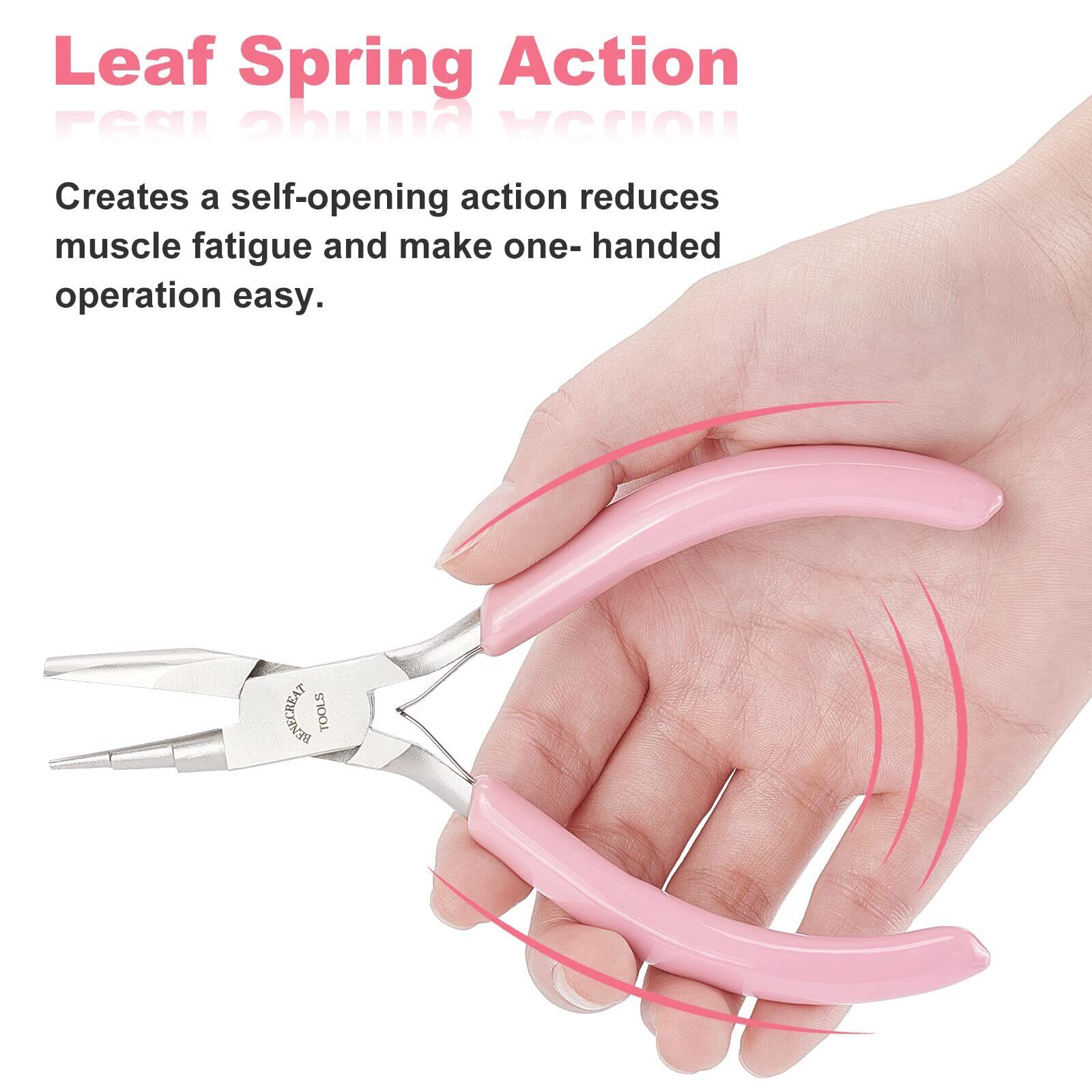 BENECREAT ジュエリーペンチ 凹型&丸型ノーズ ワイヤーループ ペンチ プライヤー ワイヤー曲げツール 手芸ペンチ 手芸用工具 アクセサリ用工具セット収納ケース付 手作り アクセサリー ビーズ 製作 クラフト ハンドメイド DIY 道具 ピンク