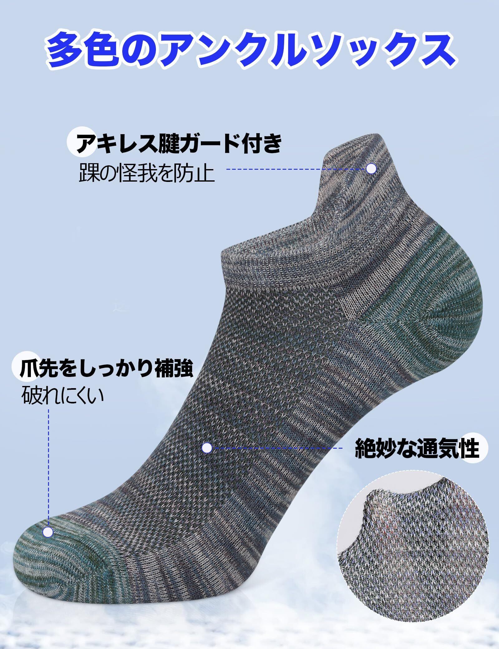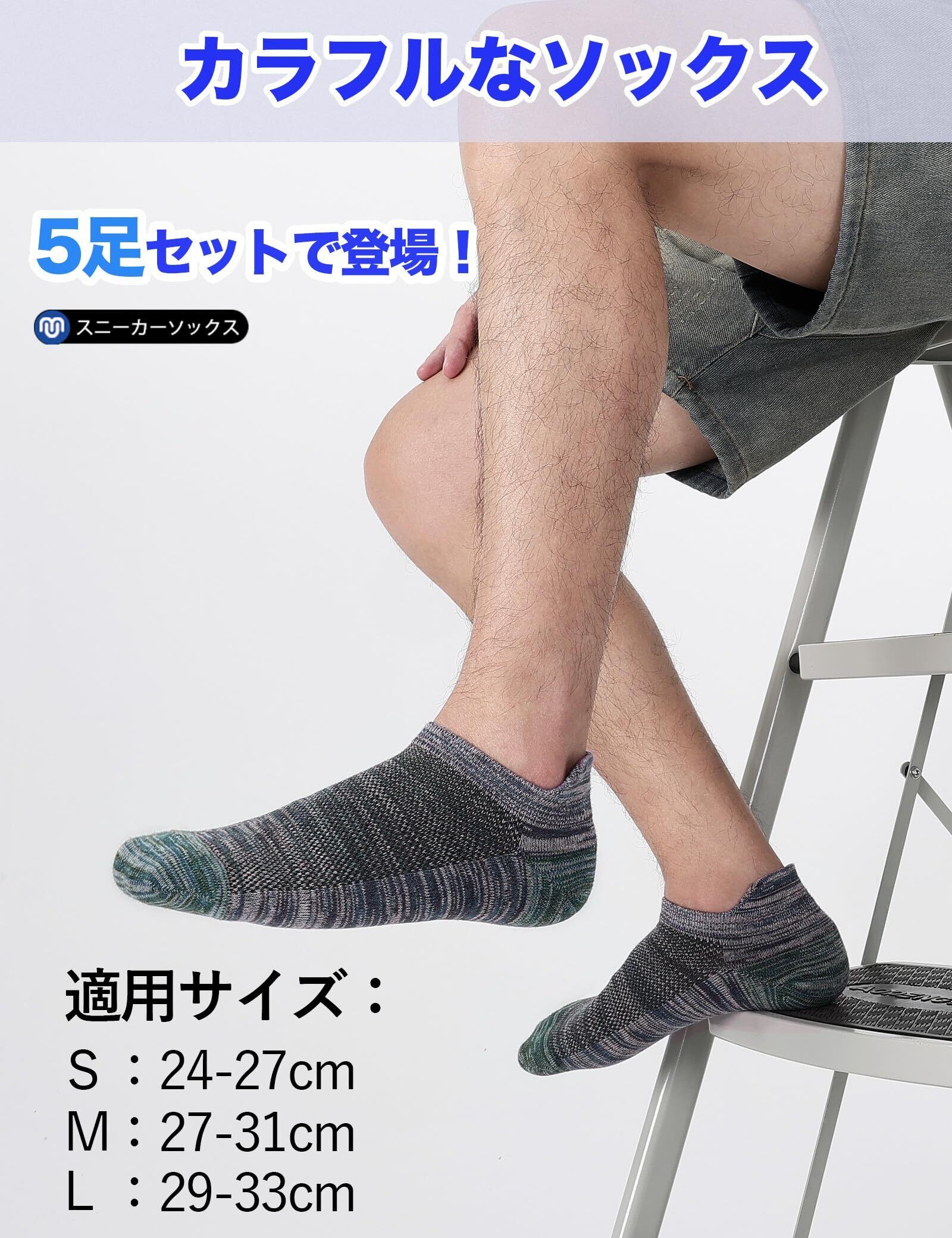 [CLOSEMATE] ソックス 靴下 メンズ くるぶしソックス 防臭吸汗 アンクルソックス 春夏用 スニーカーソックス 大きいサイズ カラフル 5足組 カジュアル スポーツ 綿 ショートソックス 男性 四季適用