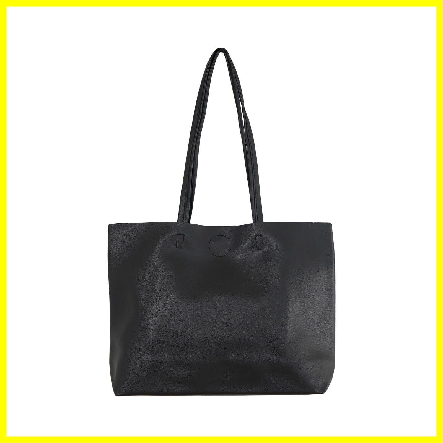 [Decorative] トートバッグ ビジネスバッグ 大容量 軽量 レディース メンズ 男女兼用 シンプル 無地 PUレザー 合皮 エコレザー 17インチPC 肩掛け 通勤 通学 面接 プレゼント (ブラック)
