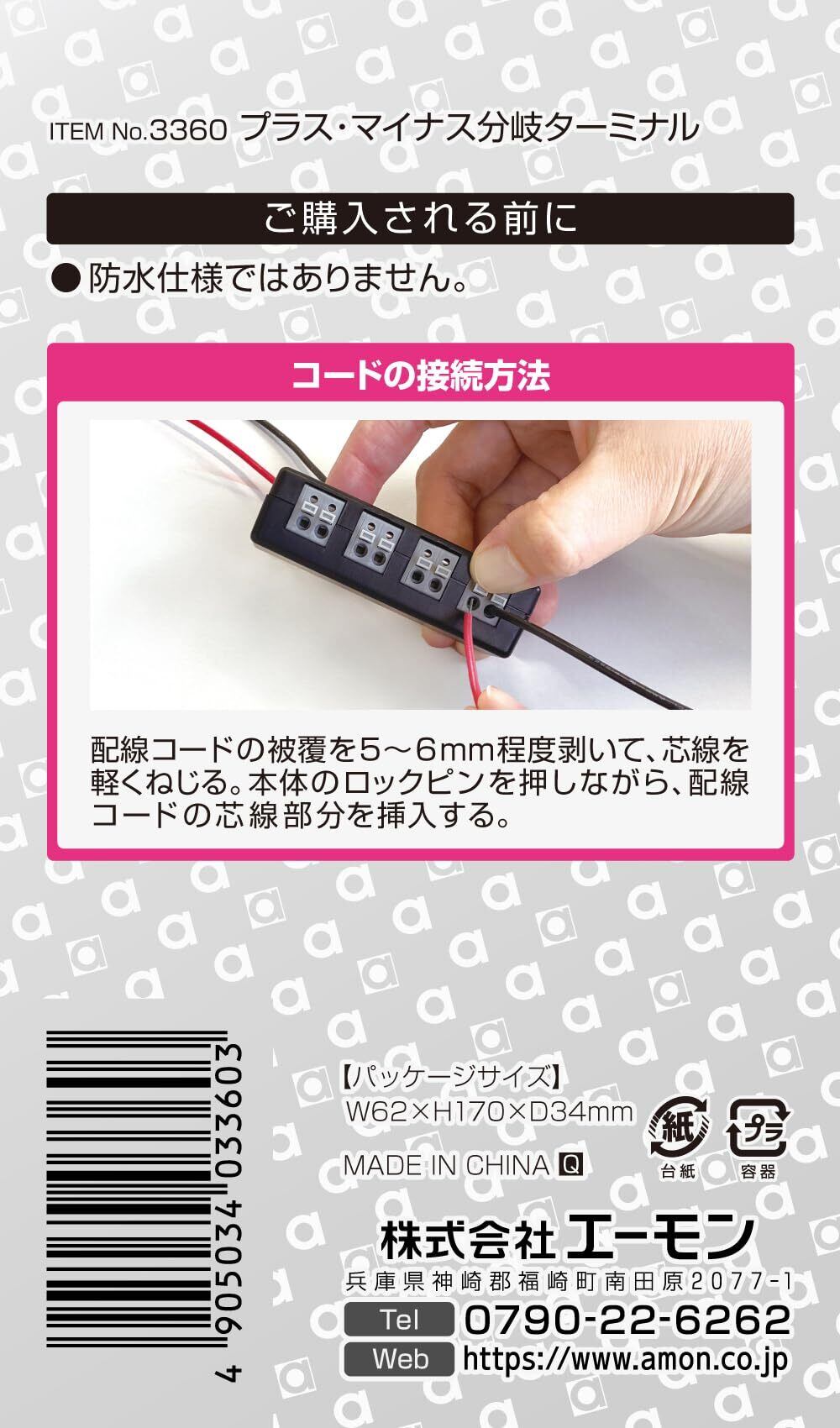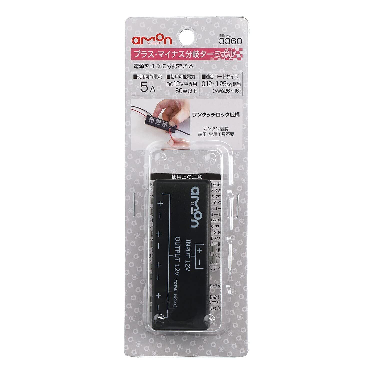 エーモン(amon) プラス・マイナス分岐ターミナル ワンタッチ接続 3360 黒