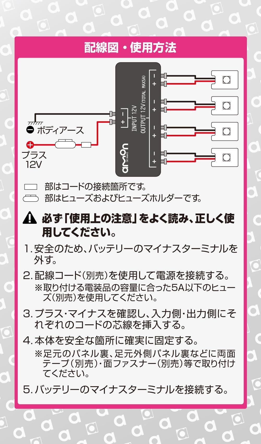 使用可能電力:DC12V車専用 60W以下