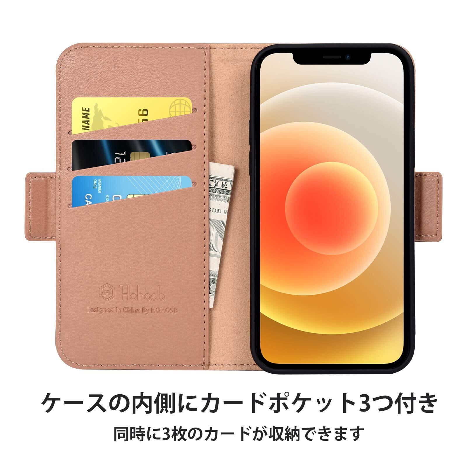 [iPhone 12 Mini ケース 手帳型 財布型 サイドマグネット式 カード収納 スタンド機能 高級PUレザー 耐衝撃 アイフォン 12 Mini ケース 手帳 カバー 全面保護 耐摩擦 人気 おしゃれ Hohosb 5.4インチ(iPhone 12 Mini 用, カーキ)]