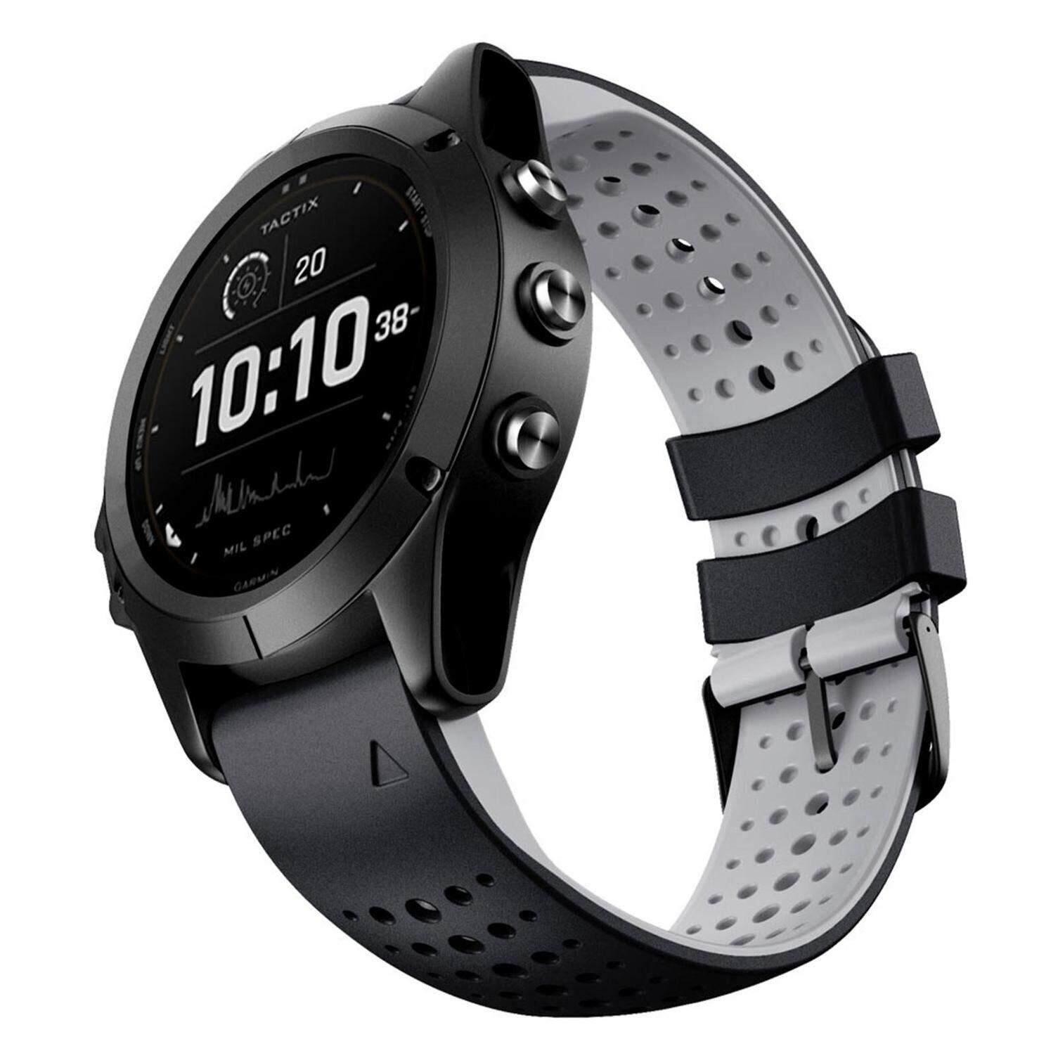 Ahayo QuickFit 22mm 替えバンド for GARMIN(ガーミン) Instinct 2 バンド 留め金具の多空気穴通気性 シリコン スポーツ バンド アップ対応GARMIN(ガーミン) Fenix 7/ EPIX 2 / Fenix 6/Fenix 5/Approach S62/Forerunner 955 965(ブラックグレー)