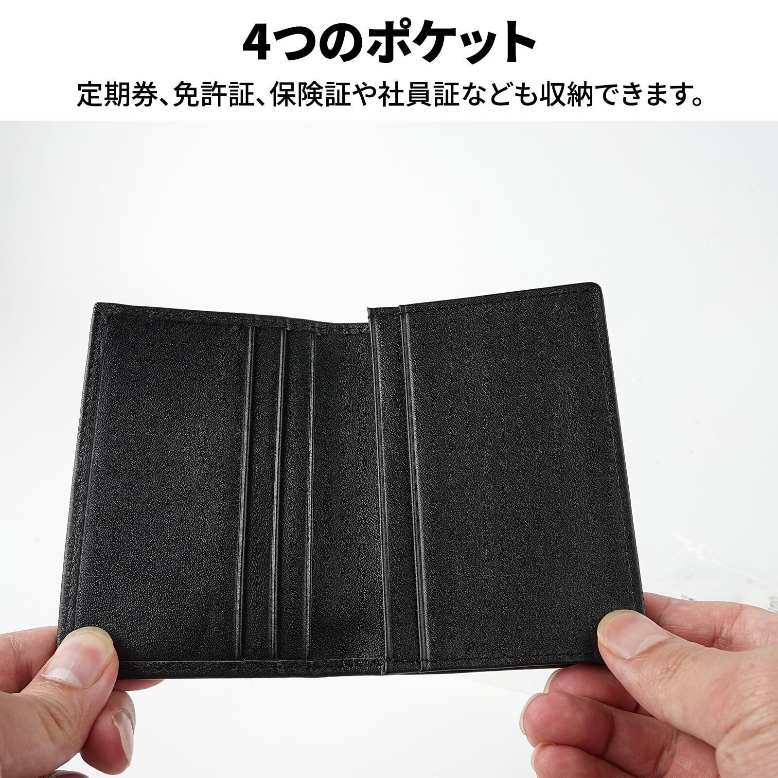 【カード収納にも】メインポケットは大容量で約40枚収納可能です。サブポケットx4、定期券、免許証、保険証や社員証なども収納できます。