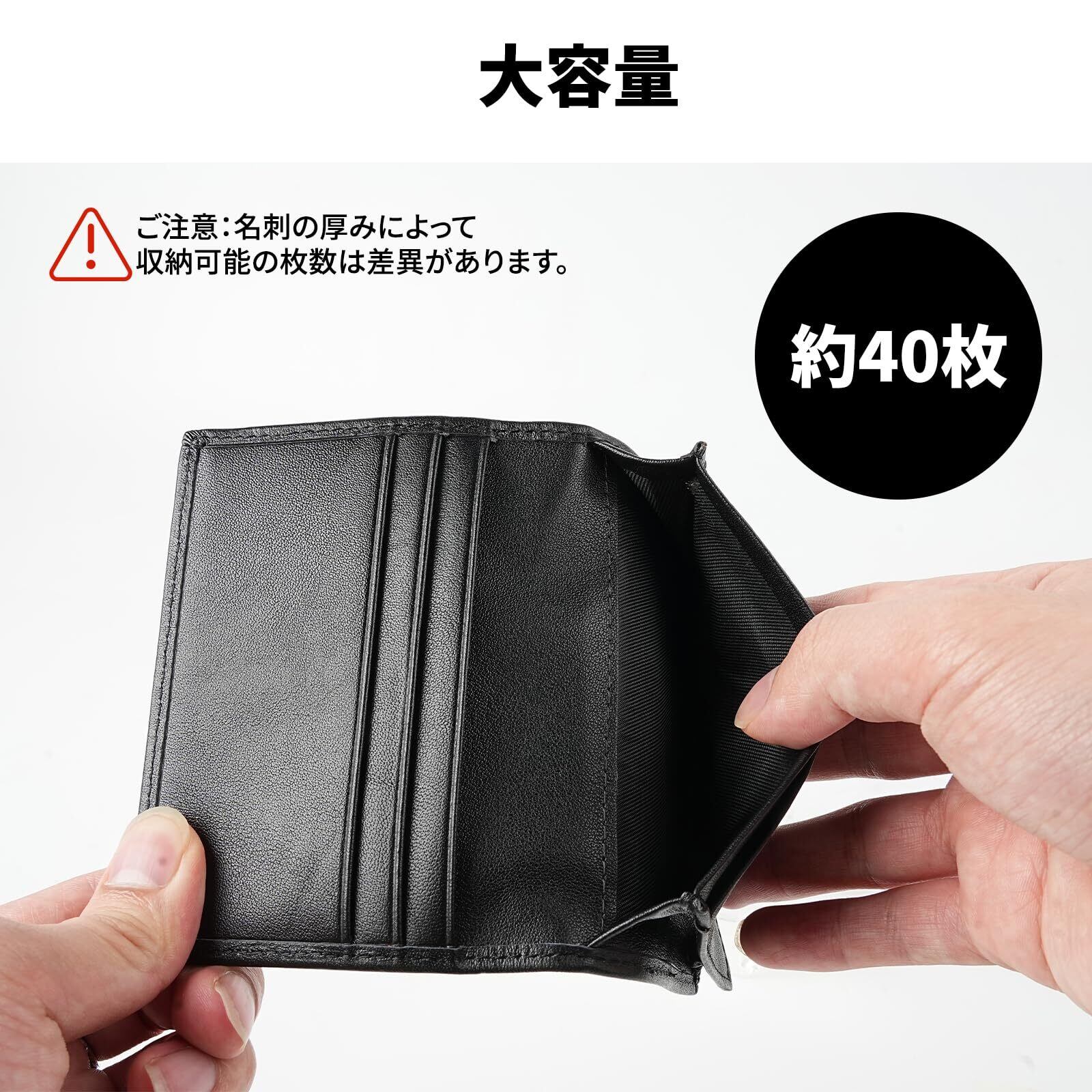 [VOOCYE] 名刺入れ メンズ 本革 大容量 40枚 名刺ケース レディース 薄型 軽量 名刺が折れない 名刺 入れ カードケース 取り出し簡単 男女兼用 (平織り-黒い)