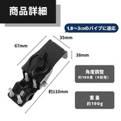 【商品詳細】基台のサイズは、縦113mm × 横33mm 重量は約190gです。取り付け可能なパイプ径は31mmまでです。ご購入前に取り付け可能かご確認ください。