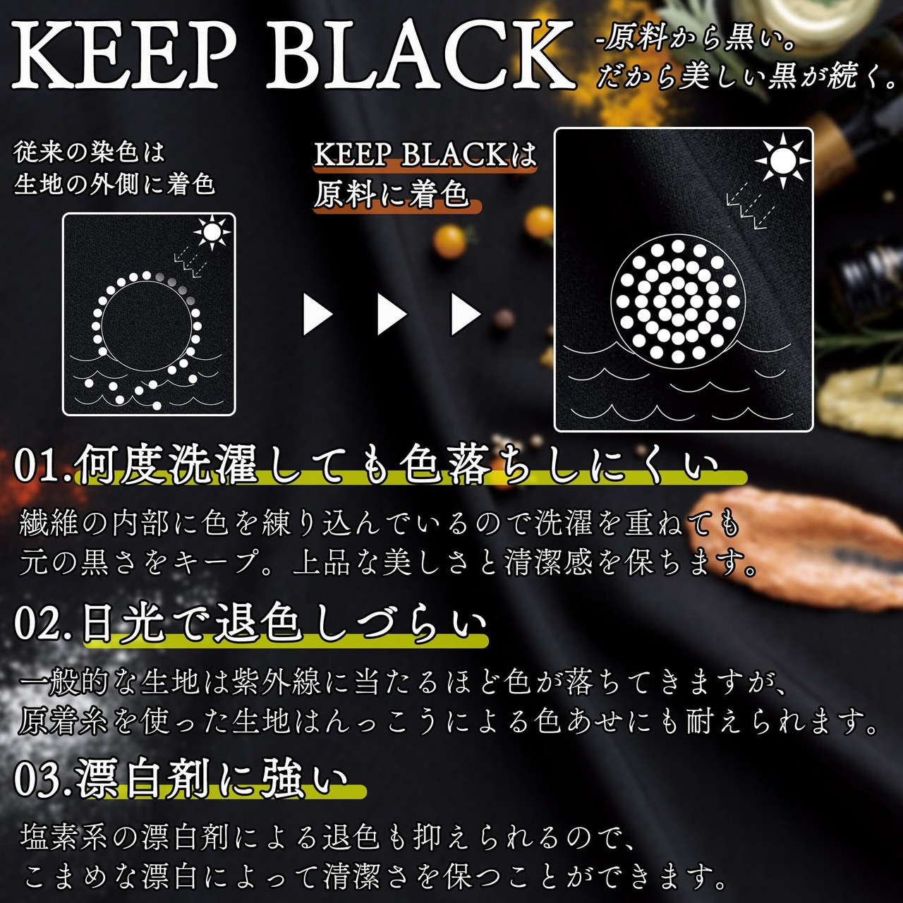 原料の段階で着色する「原着糸」を使用したエプロン。美しい「黒」を保ちます。