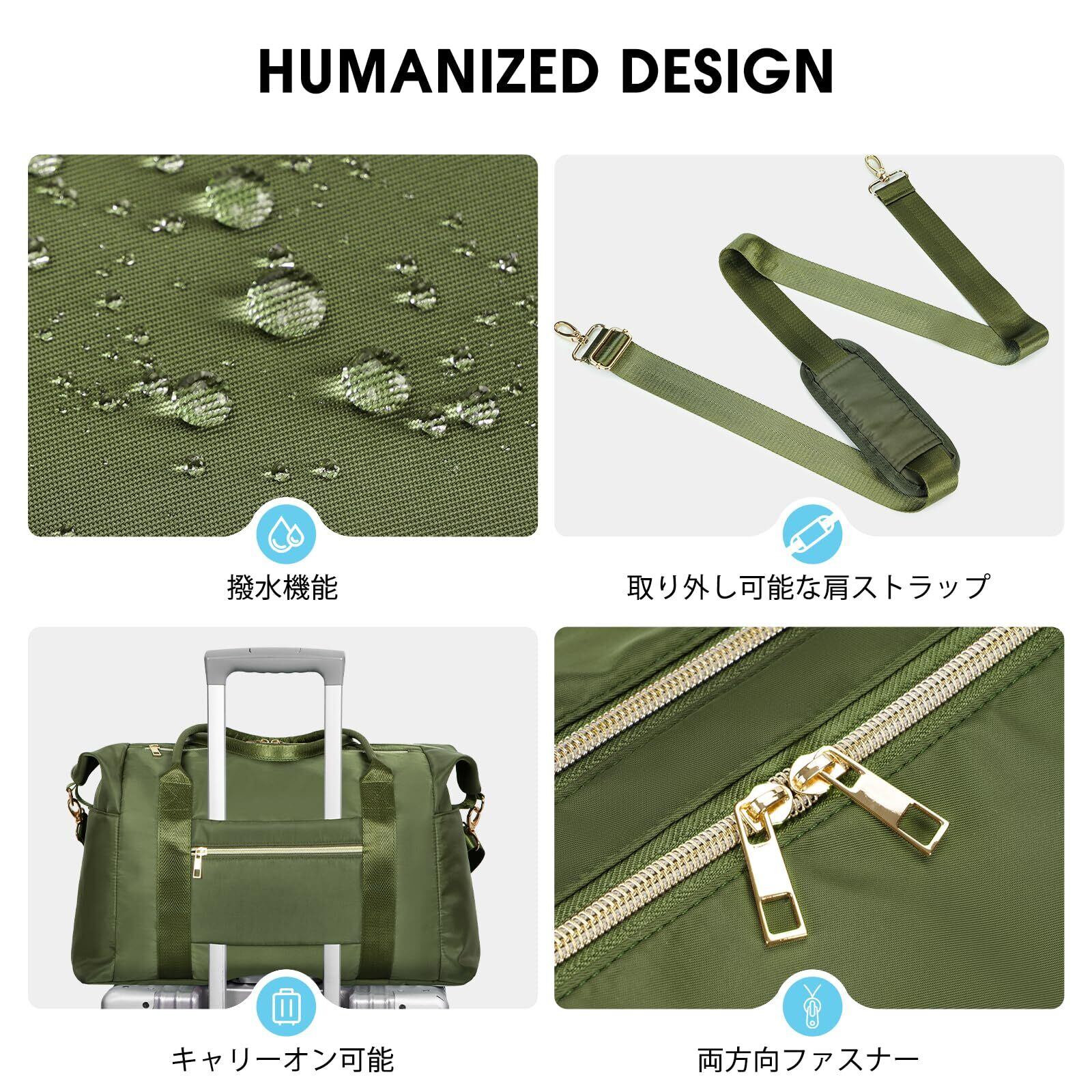 WANDF 32Lボストンバッグ キャリーオンバッグ 機内持込可 スーツケース固定可 大容量 斜め掛け(Dark Green)
