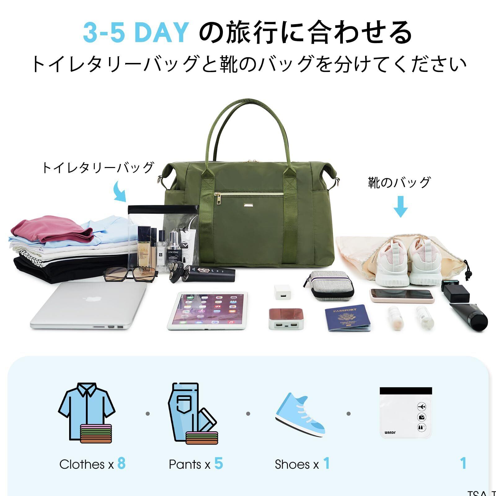 【独立したTSAトイレタリーバッグ】WANDFトラベルバッグには、TSAの3-1-1液体規則に準拠した透明なトイレタリーバッグが付属しており、セキュリティスクリーニングをスムーズに進めるのに役立ちます。