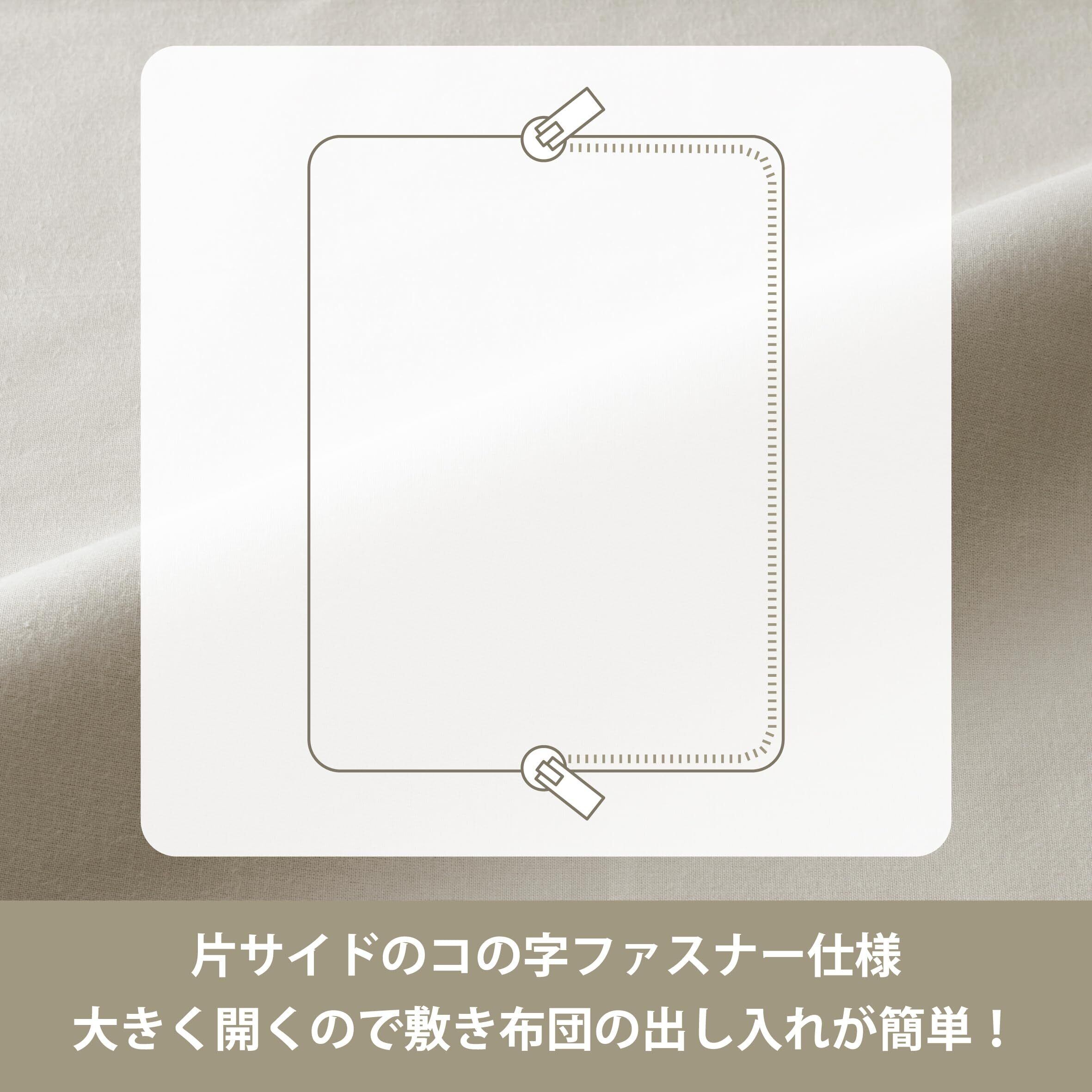 文字通り、コの字に大きく開くことが出来るファスナー付きでふとんの出し入れも簡単。