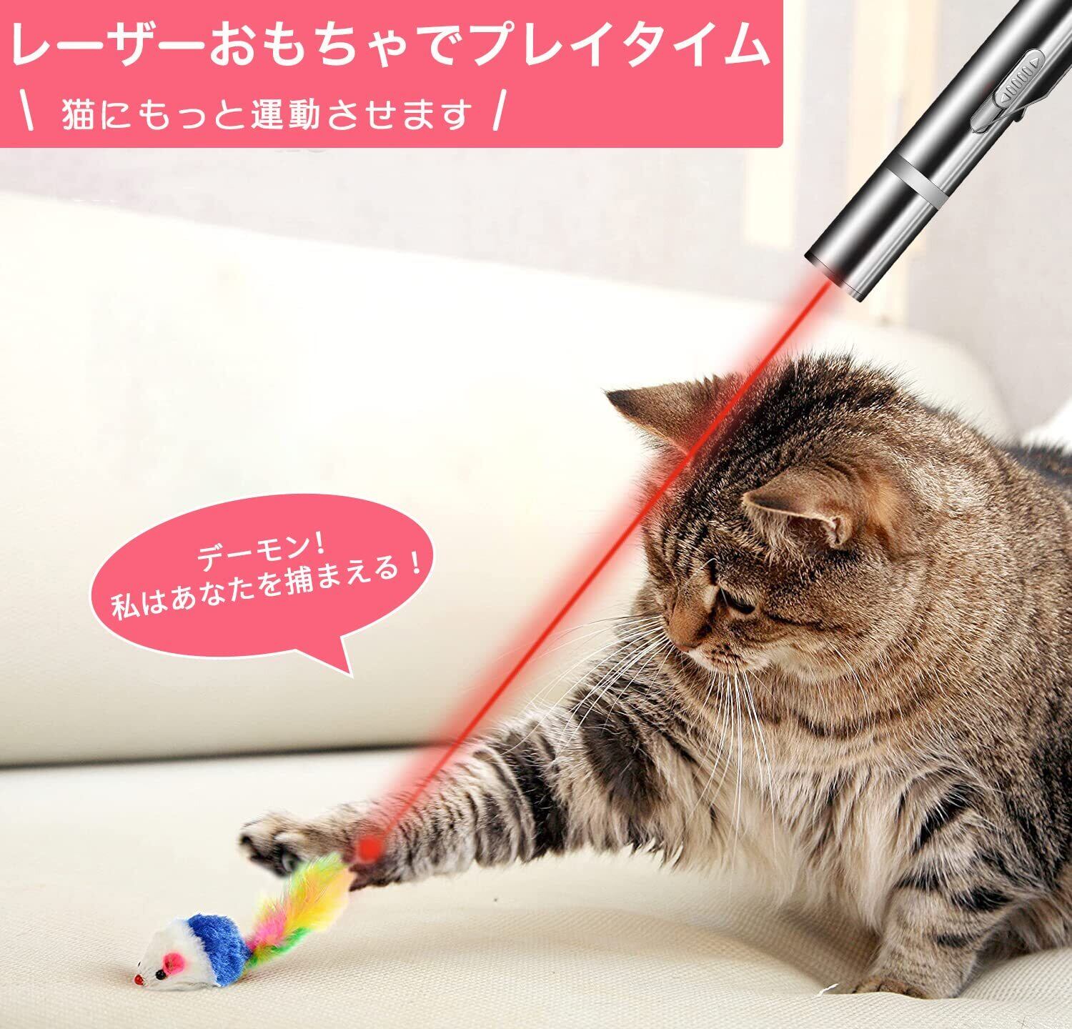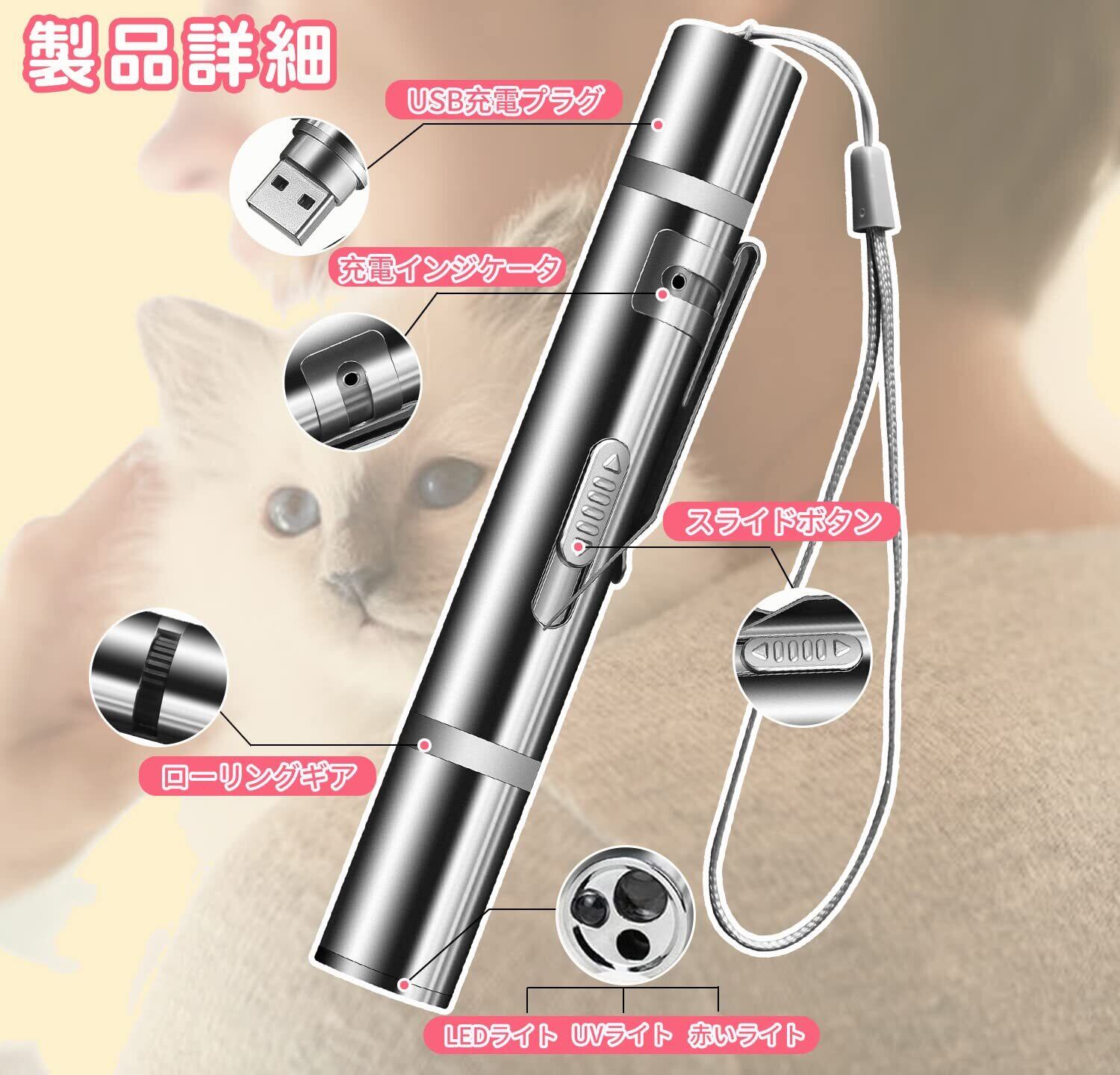 【安全な素材】ステンレス製のおもちゃは無味で、安全性に配慮されています。LEDライトが付属しており、猫の目に負担をかけることがありません。また、LED懐中電灯としてペットの散歩にも使えます。