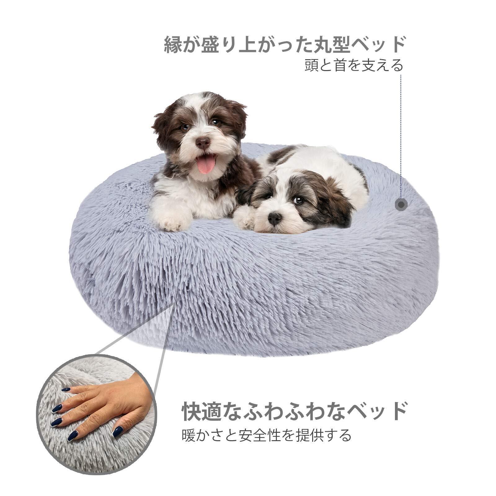 Aurako 70cm 犬ベッド猫ベッド ふわふわ 丸型 クッション ドーナツペットベッド ぐっすり眠る 猫用 小型犬用 もこもこ 暖かい 滑り止め 防寒 寒さ対策 洗濯可能 子犬 猫用 サイズ選択可 ライトグレー
