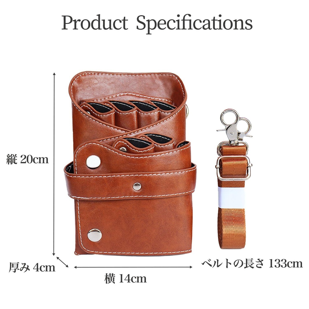 【商品仕様】商品内容:シザーケース1個。カラー:ブラック、グリーン、ブルー、ブラウン、レッド。サイズ:縦20cm、横14cm、厚み4cm、ベルトの長さ約133cm。重量:約230g(サイズにおきまして個体差や計測の仕方で多少の誤差がある場合がございます)。モニターなど環境により画像と若干見え方が違う場合がございます。