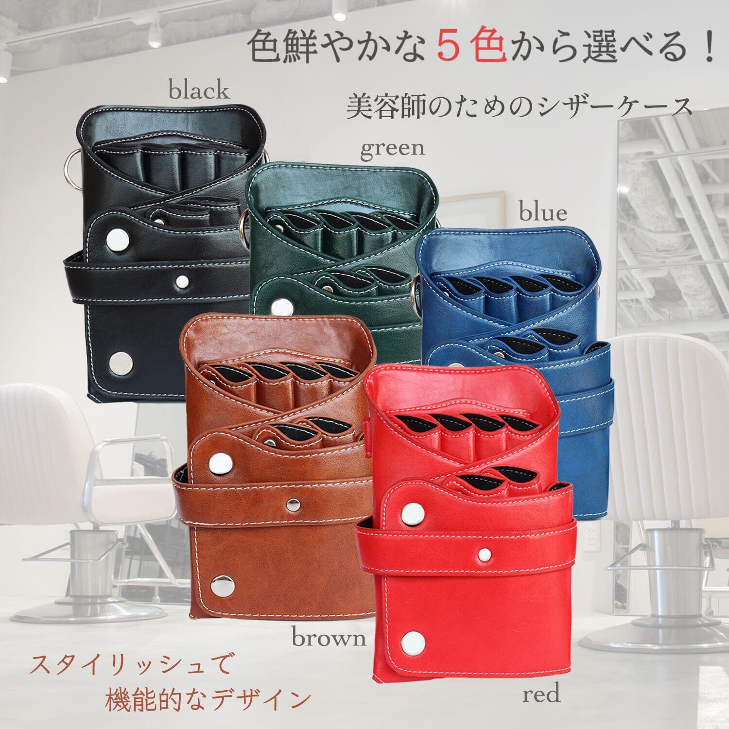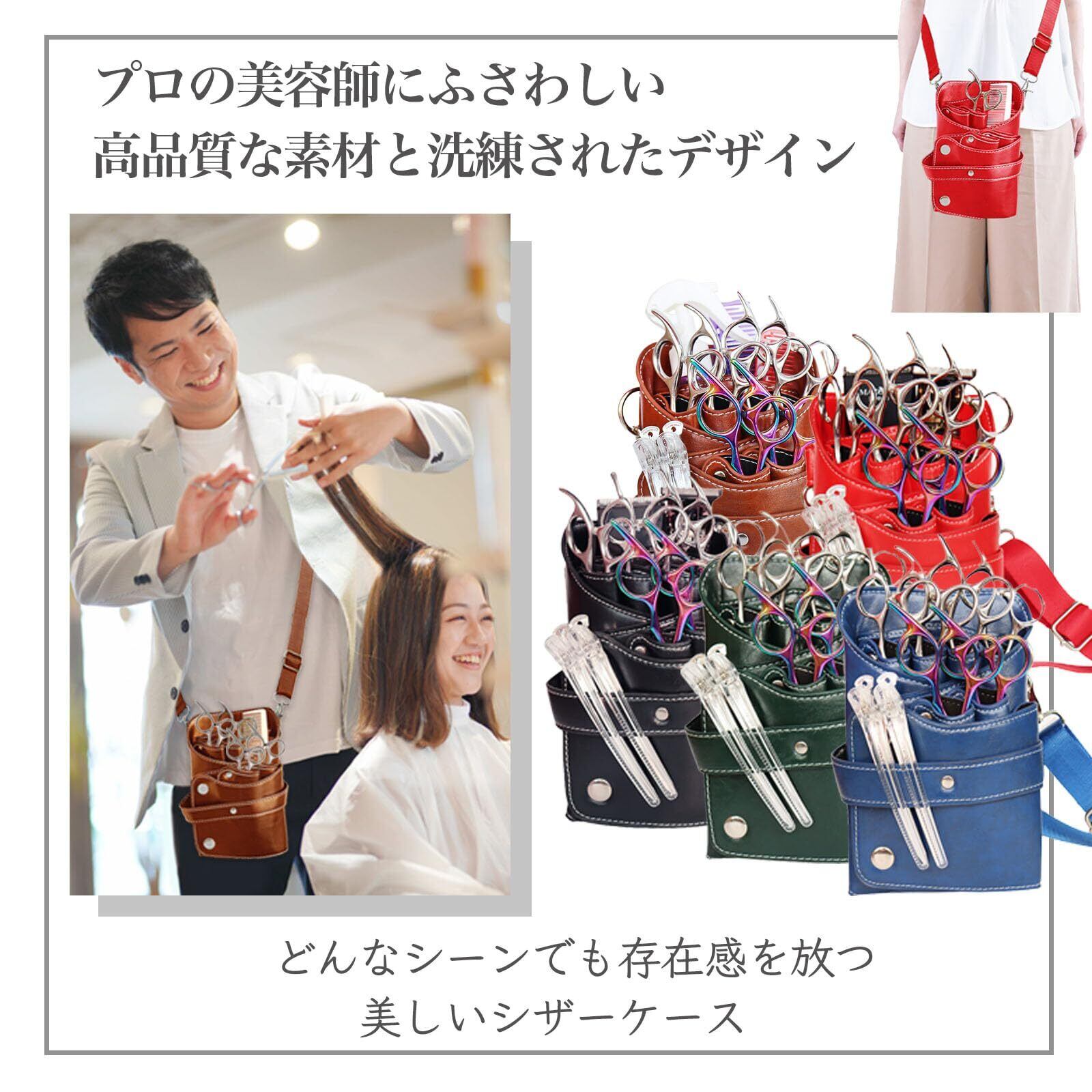【個性を表現するカラースタイル】あなたのスタイルに合わせて、黒、緑、青、茶、赤からお選びいただけます。美容室での作業を色とりどりに彩る高品質なシザーケースで、毎日の仕事をもっと楽しく、もっとスタイリッシュに。