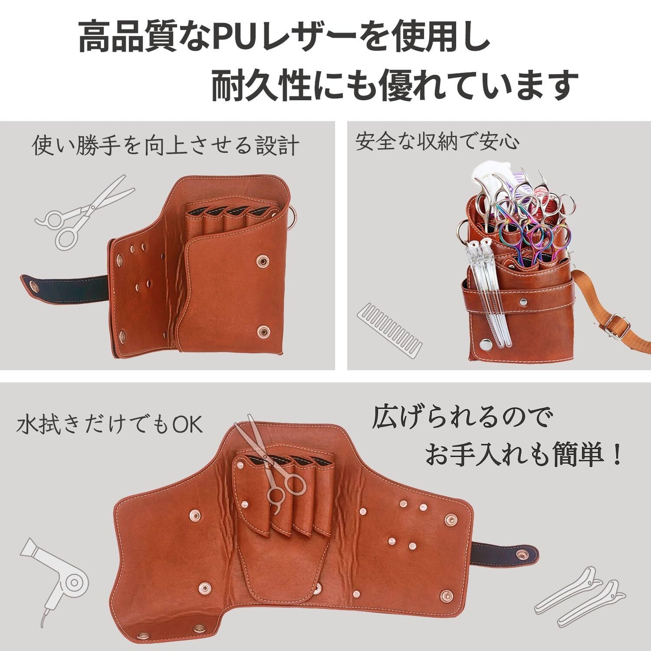【充実した機能性】高品質PUレザーを採用しており、水や汚れに強く、長期間の使用にも耐える耐久性を実現。ツールを安全に保護しながら、スタイリッシュな外観もキープ。美容師のプロフェッショナルなワークライフをサポートします。