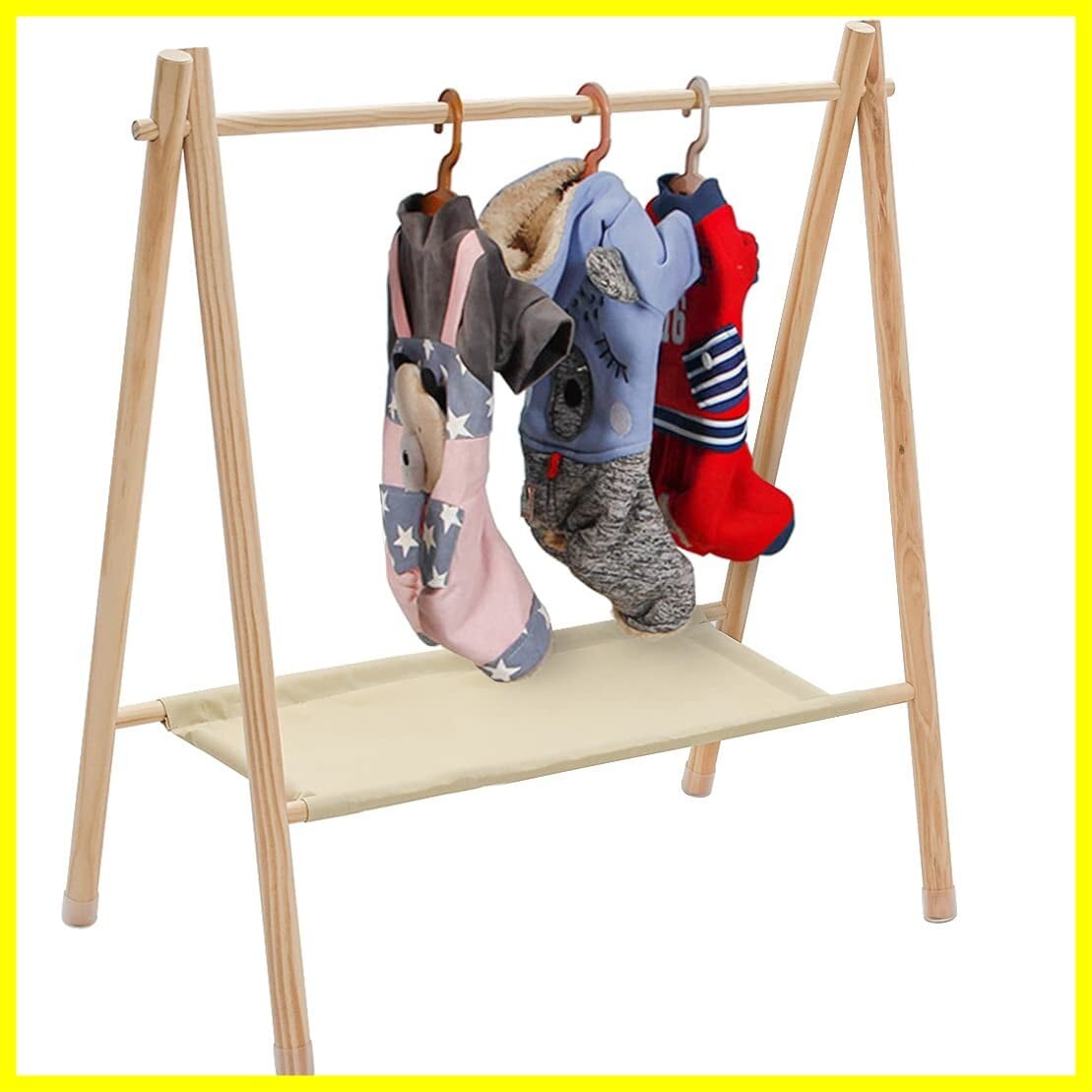 木製のキュートなハンガーラック。子供服をおしゃれに整頓できます!もちろん、ワンちゃん、にゃんこ達の小さなお洋服を掛けておこう!ワンピース等シワにならずに可愛く着せてあげれます。