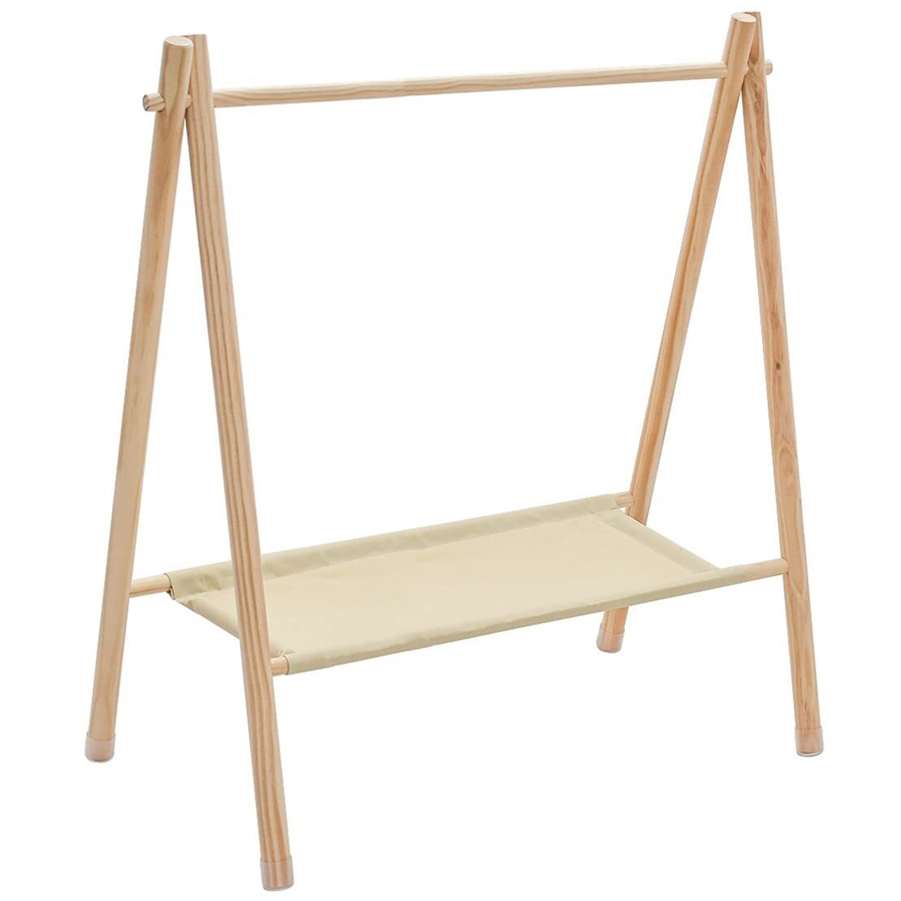Cific ハンガーラック 棚付き 木製 お洋服 ディスプレイ (ベージュ, Lサイズ)