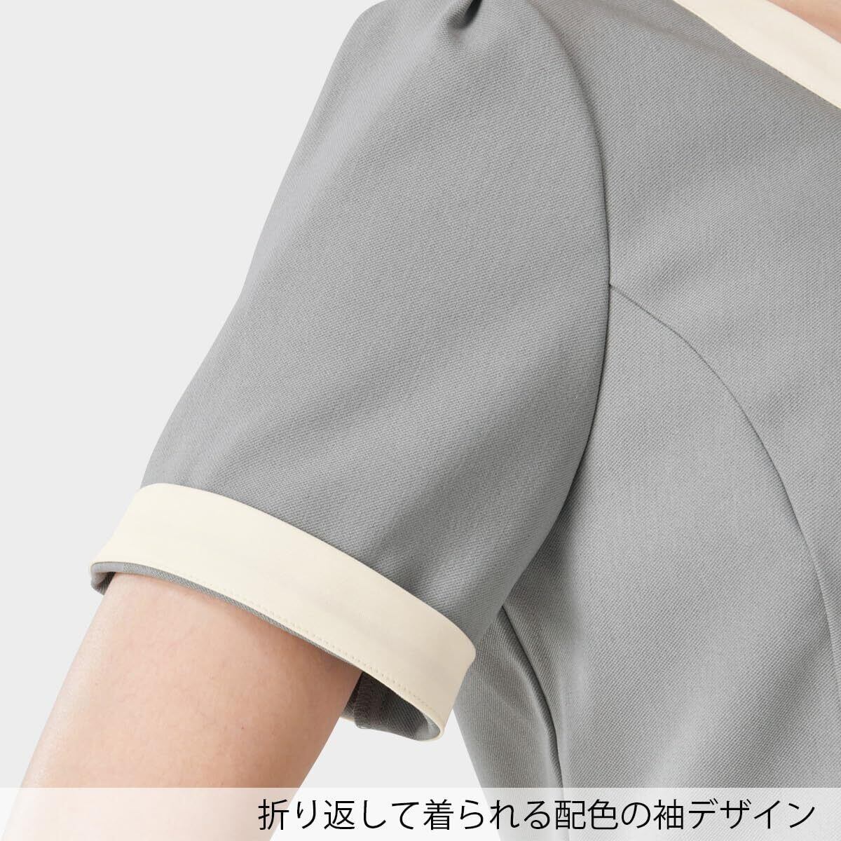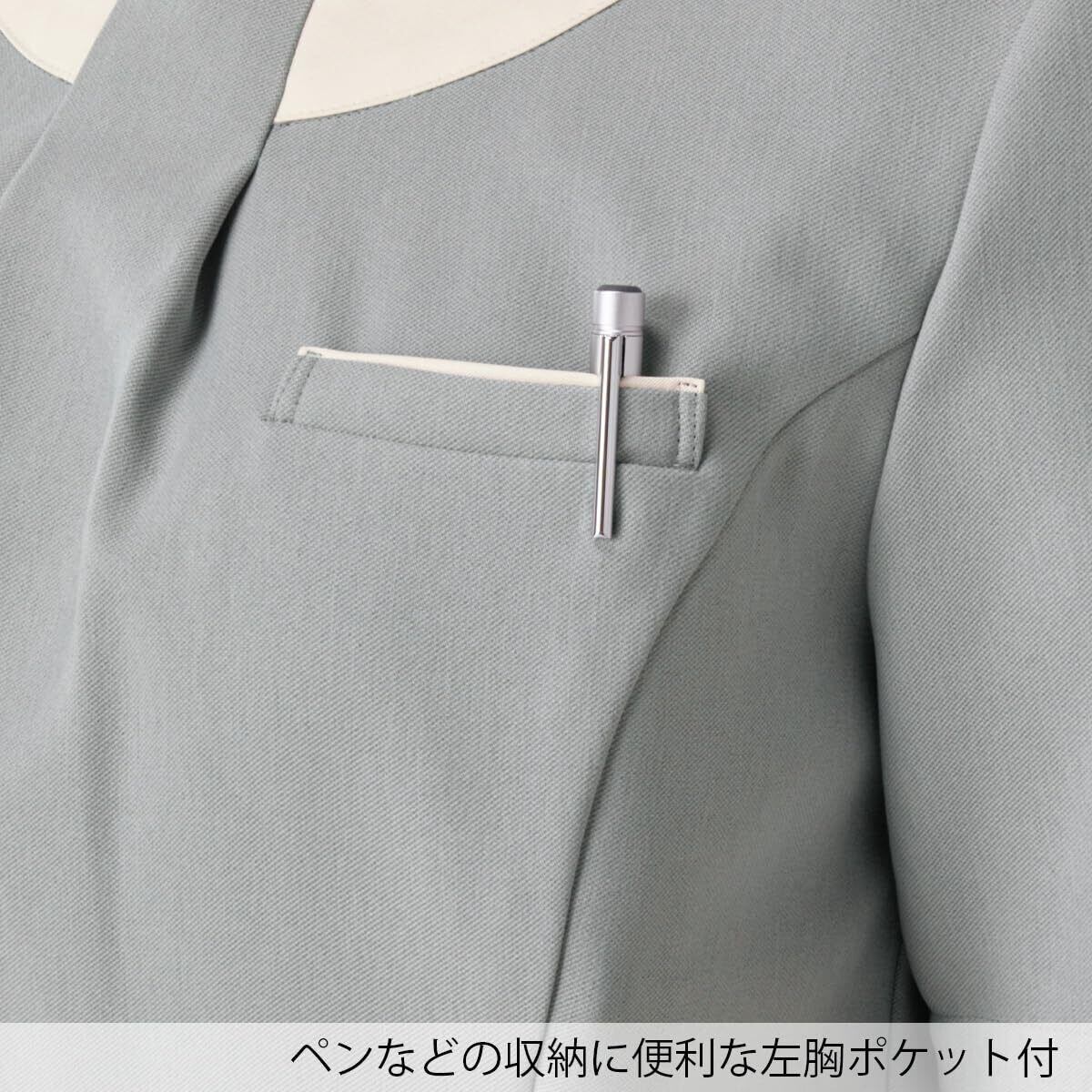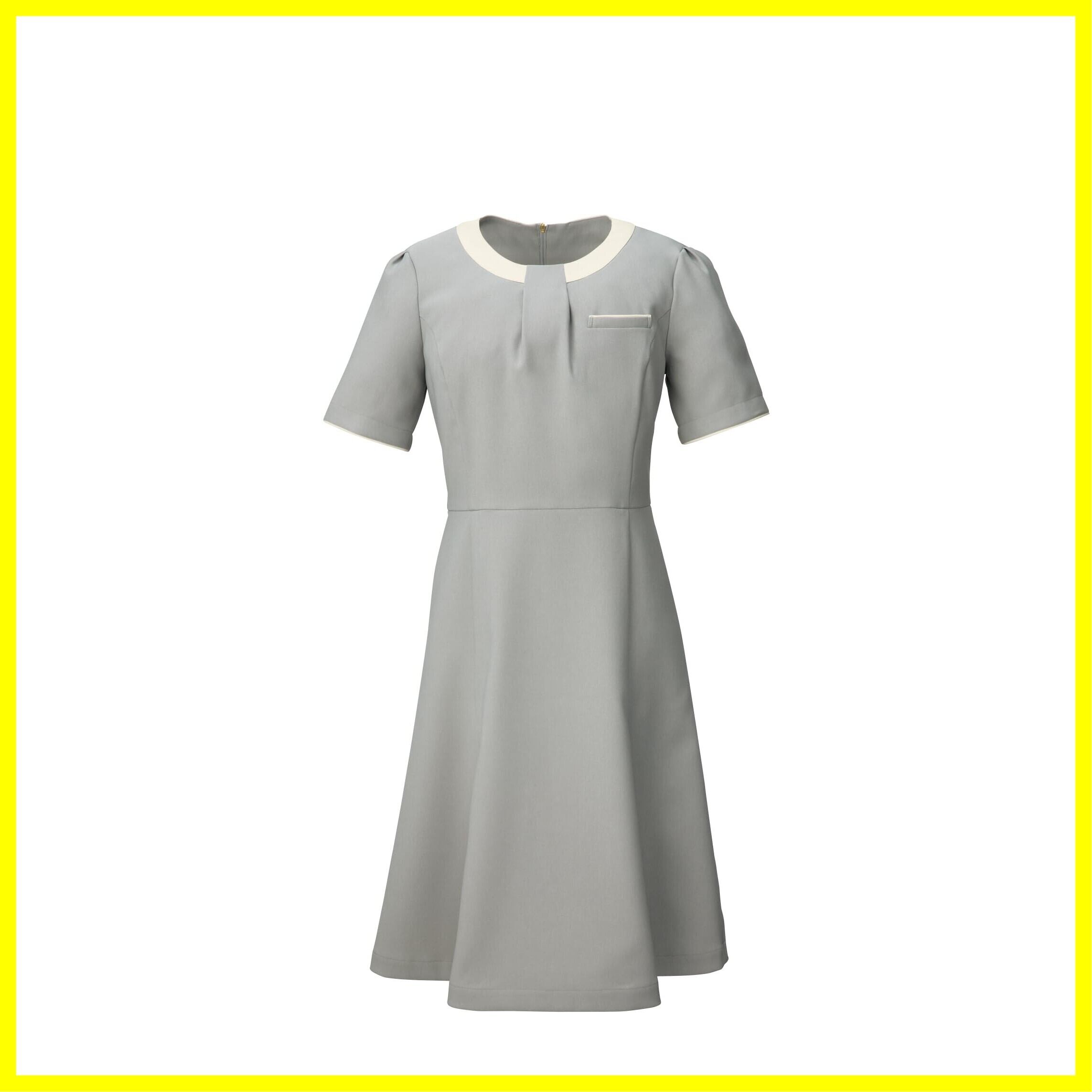 首まわりのデザインが印象的なおもてなし向けワンピース。使用しているフルーレクスは、今までの布帛素材では出せなかったストレッチ感もありつつ、工業洗濯対応、速乾性、イージーケア性も有する素材です。スカーフがなくてもフォーマルな印象をつくる襟元は、ジャケットを羽織った際もお顔まわりのアクセントに。スカート部分はほどよいマーメイドシルエットで、女性らしさを演出しています。メディカルユニフォームでは珍しい上品なツイード調の素材のワンピースです。