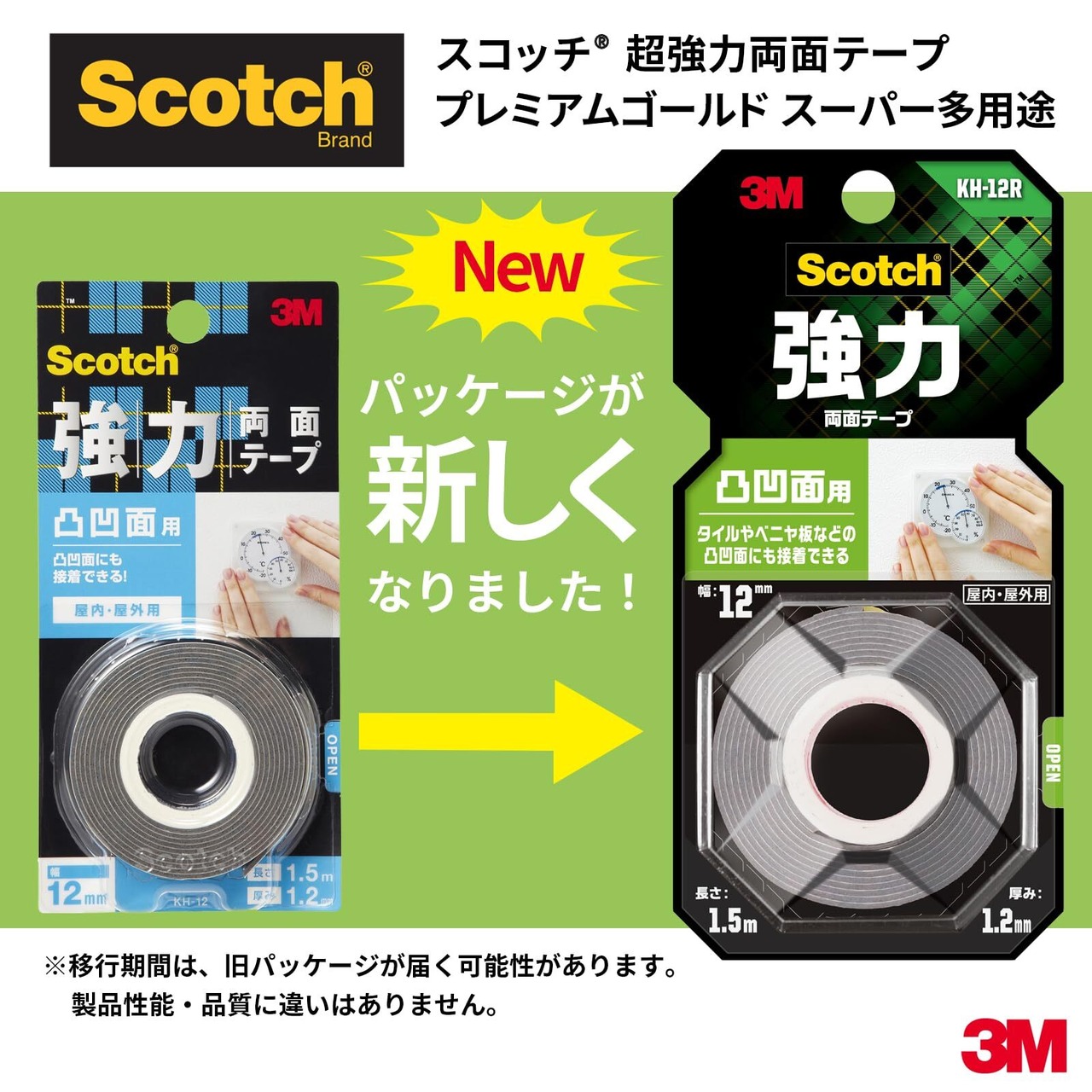 [3M スコッチ 強力両面テープ 凸凹面用 幅12mm長さ1.5m KH-12R]