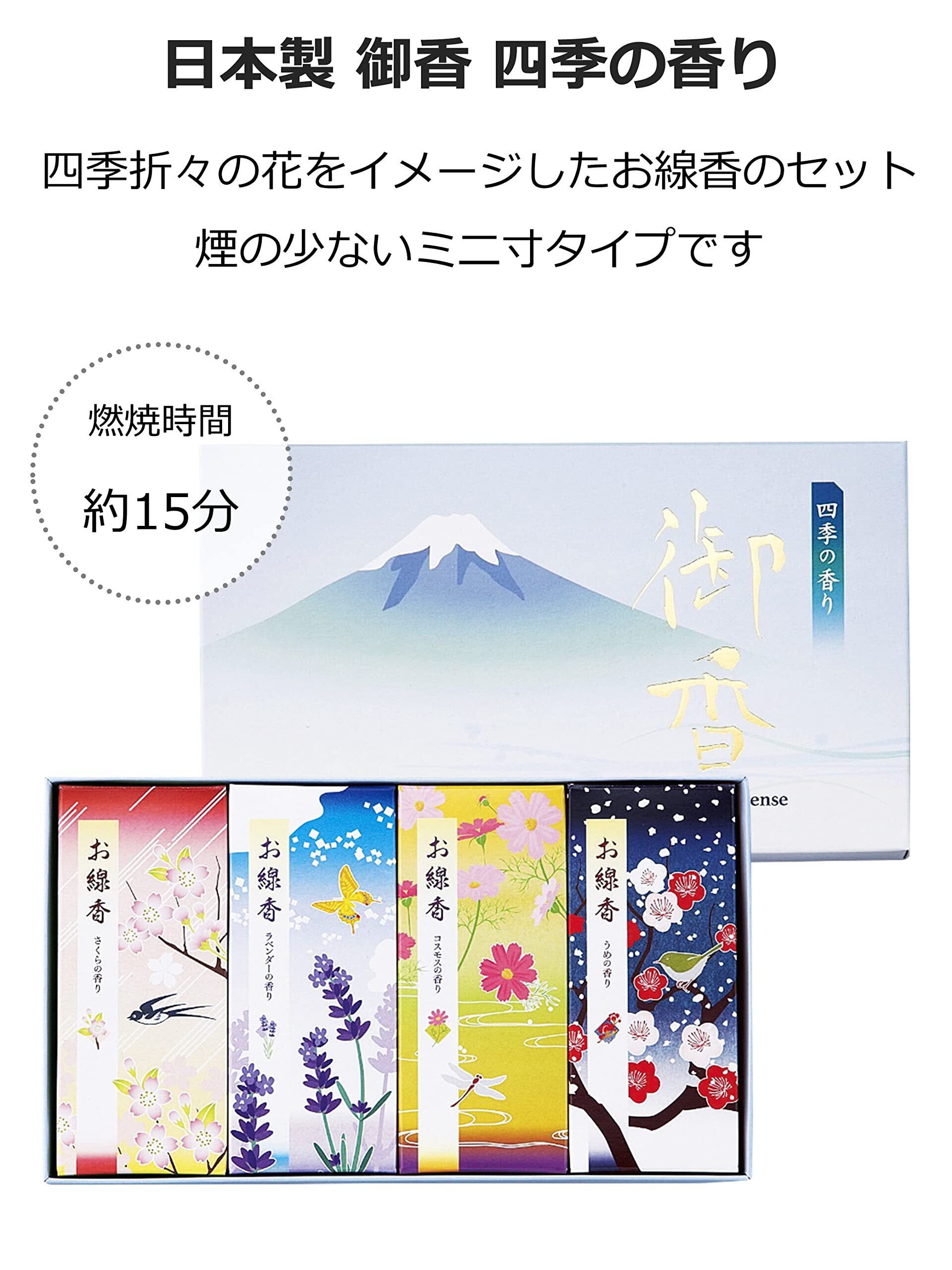 仏具のマルエス(Maruesu) マルエス 日本製 線香 御香 四季の香り(さくら・ラベンダー・コスモス・うめ) 10S252 アソート ミニ