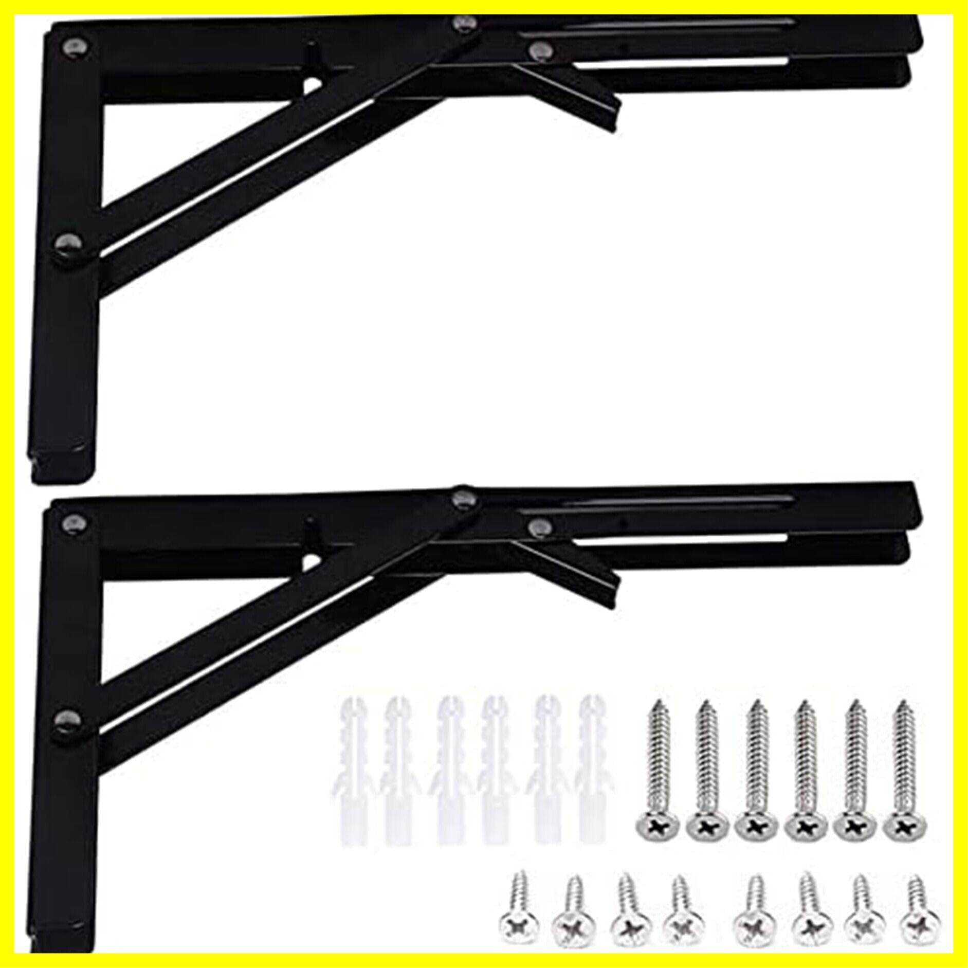 LUCKYBEE 2本セット 棚受け金具 L字型 棚支え ブラケット 折りたたみ アイアン 金具 耐荷重50kg 折畳みテーブルヒンジ 壁掛けテーブル(20cm, ブラック)