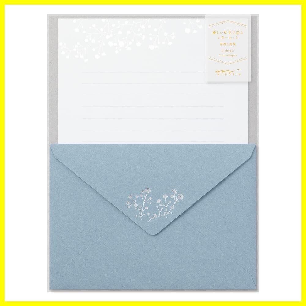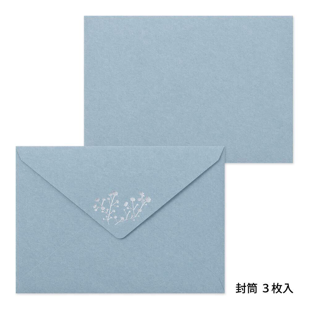 ミドリ レターセット 箔押封筒 かすみ草柄 86508006