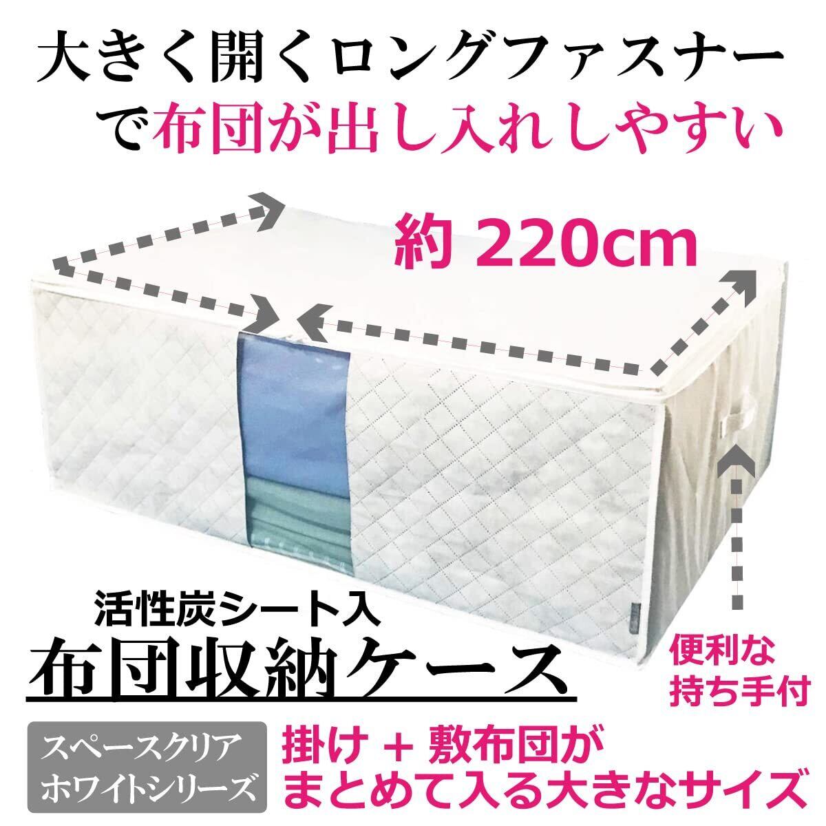【活性炭のチカラで消臭保管】活性炭シートを加工した通気性の良い不織布生地(前面)を使用し、大切な布団や寝具をにおい・ホコリ・汚れから守ります