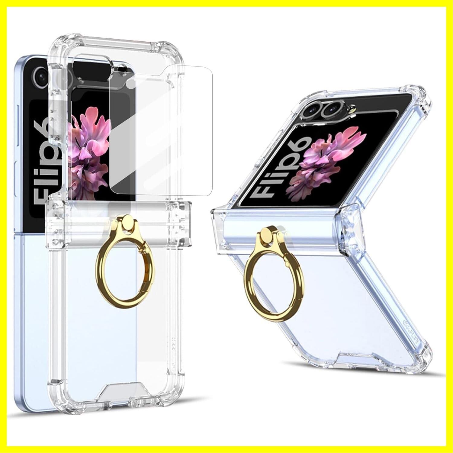 Galaxy Z Flip6 ケース クリア Samsung ギャラクシーzフリップ 6 / SC-54E 用 カバー リング付き ヒンジ保護 Uovon スマホケース 耐衝撃 スタンド機能 ストラップ穴付き 超軽量 超薄型 黄変防止 おしゃれ・クリア