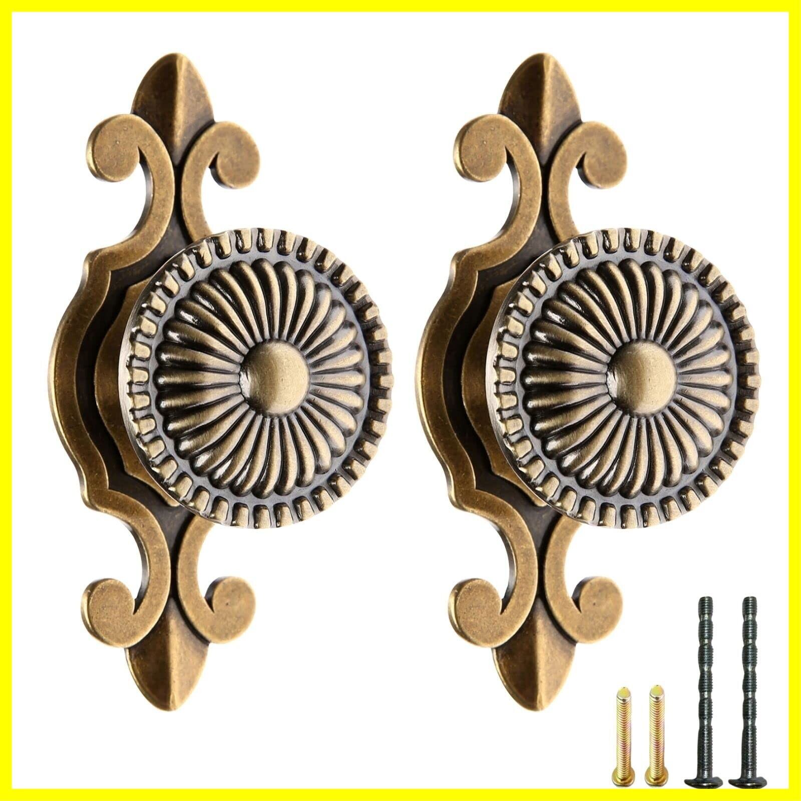 Lemfema 引き出しノブ 取っ手 アンティーク調 ツマミ ドアノブ シングルホール 亜鉛合金 食器棚 キャビネット プルハンドル DIY ブロンズ 2種類ネジ付き【全長74mm 幅30mm】2個入