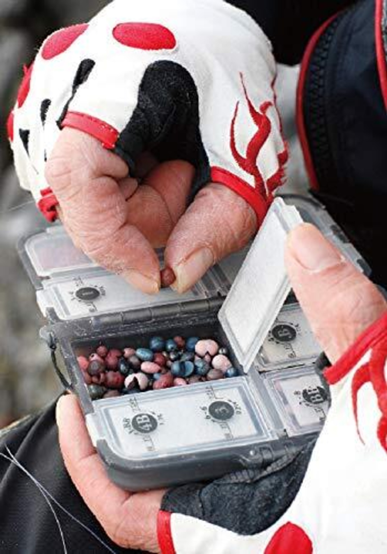 便利な段打ち目安表が付いたケース入りです。ウキに合わせた落としオモリとハリスオモリがひと目で選ぶことができます。