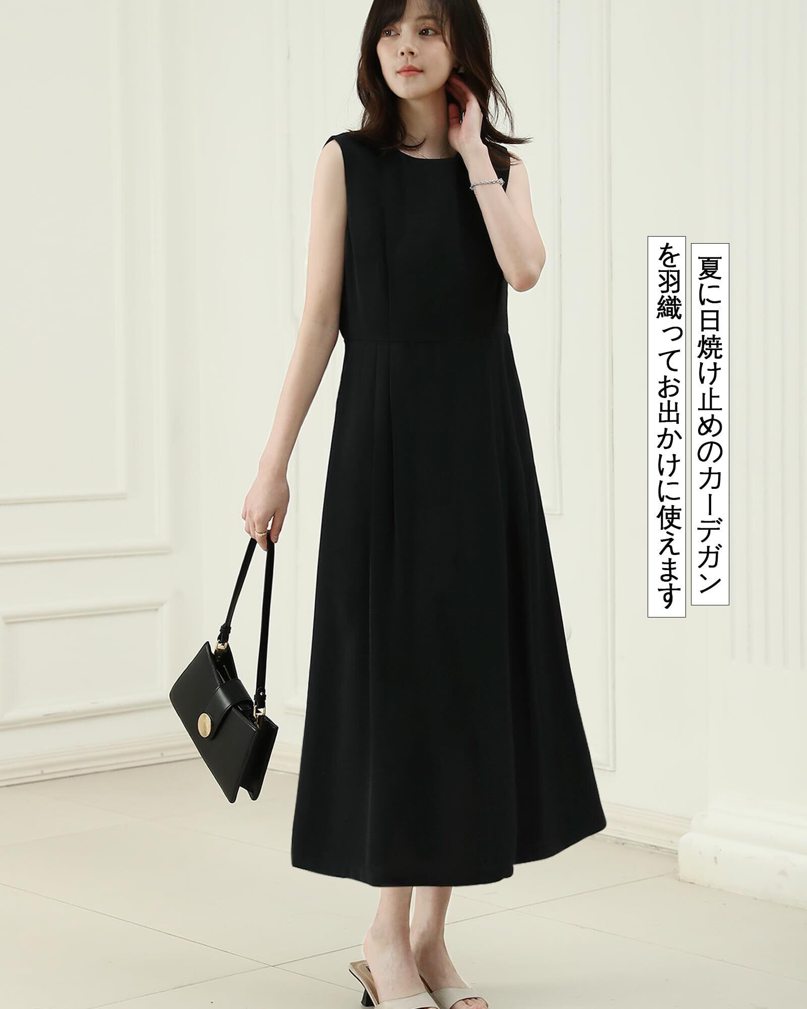 [Bidason] ワンピース レディース ロング ノースリーブ 涼しげ エレガント 無地 シンプル 大人 おしゃれ ゆる感 体型カバー 裏地付き ファスナー 着やすい 普段着 カジュアル 通勤 夏
