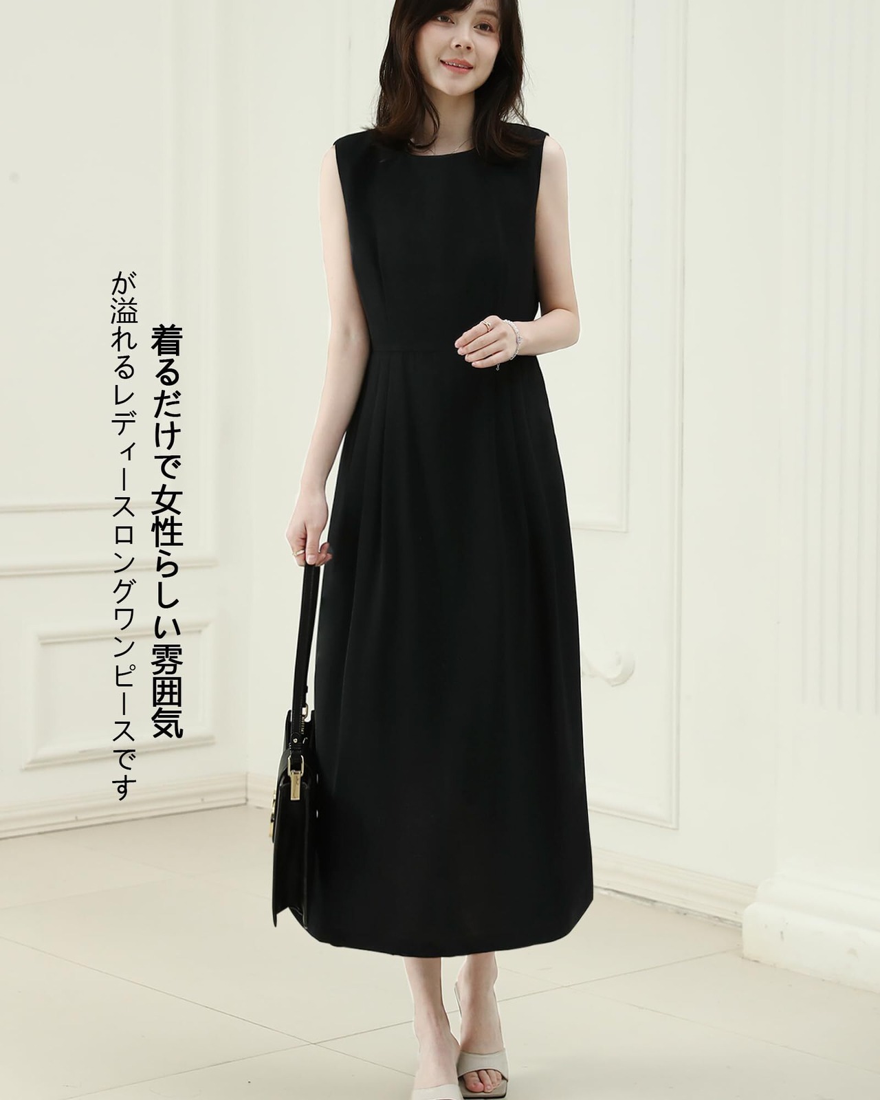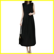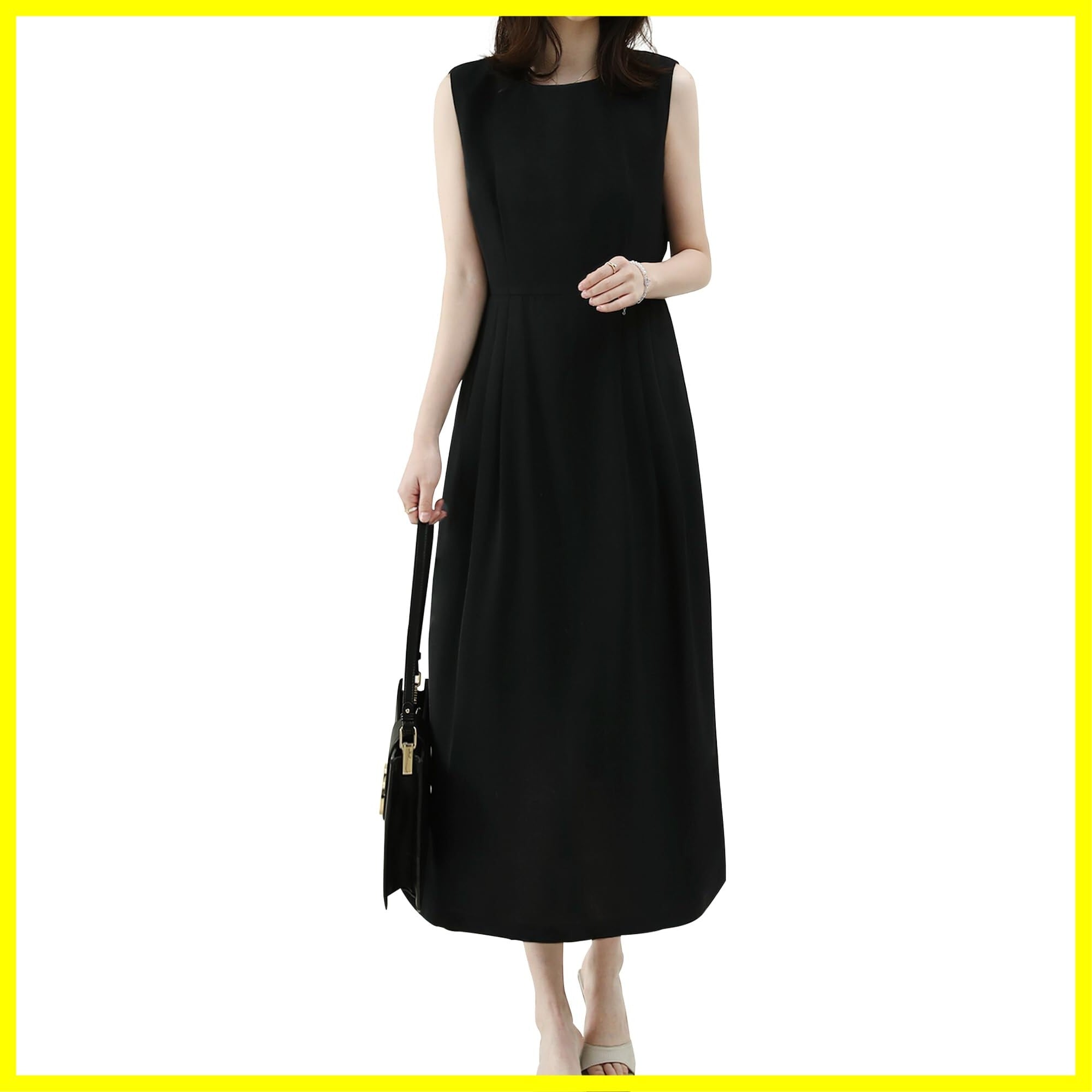 ◎着るだけで女性らしい雰囲気が溢れるレディースロングワンピースです。クールネックなので首周りをスッキリ見せてちょっとだけアクセサリーをあしらったら美しいデコルテを演出してくれます。右脇側にファスナーと後ろ背中に涙開けボタン設置しており、着脱ぎと着替えに便利です。ウェストタックが程よい立体感を引き立てます。膝下までのロング丈で歩くたびに揺れ揺れして知的でエレガントの印象に。涼しげなノースリーブのデザイン、夏に相応しいです。