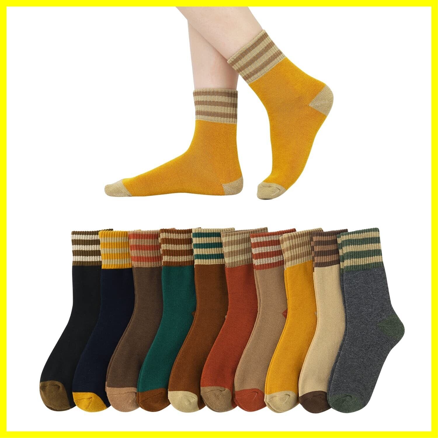 [DAMILY] 靴下 レディース 暖かい 冬くつした レディース 防寒 10足セット あったか靴下 厚手 裏起毛 女性用 カジュアル カラフルソックス おしゃれ アウトドア クルーソックス 保温性 22‐25㎝ 室内