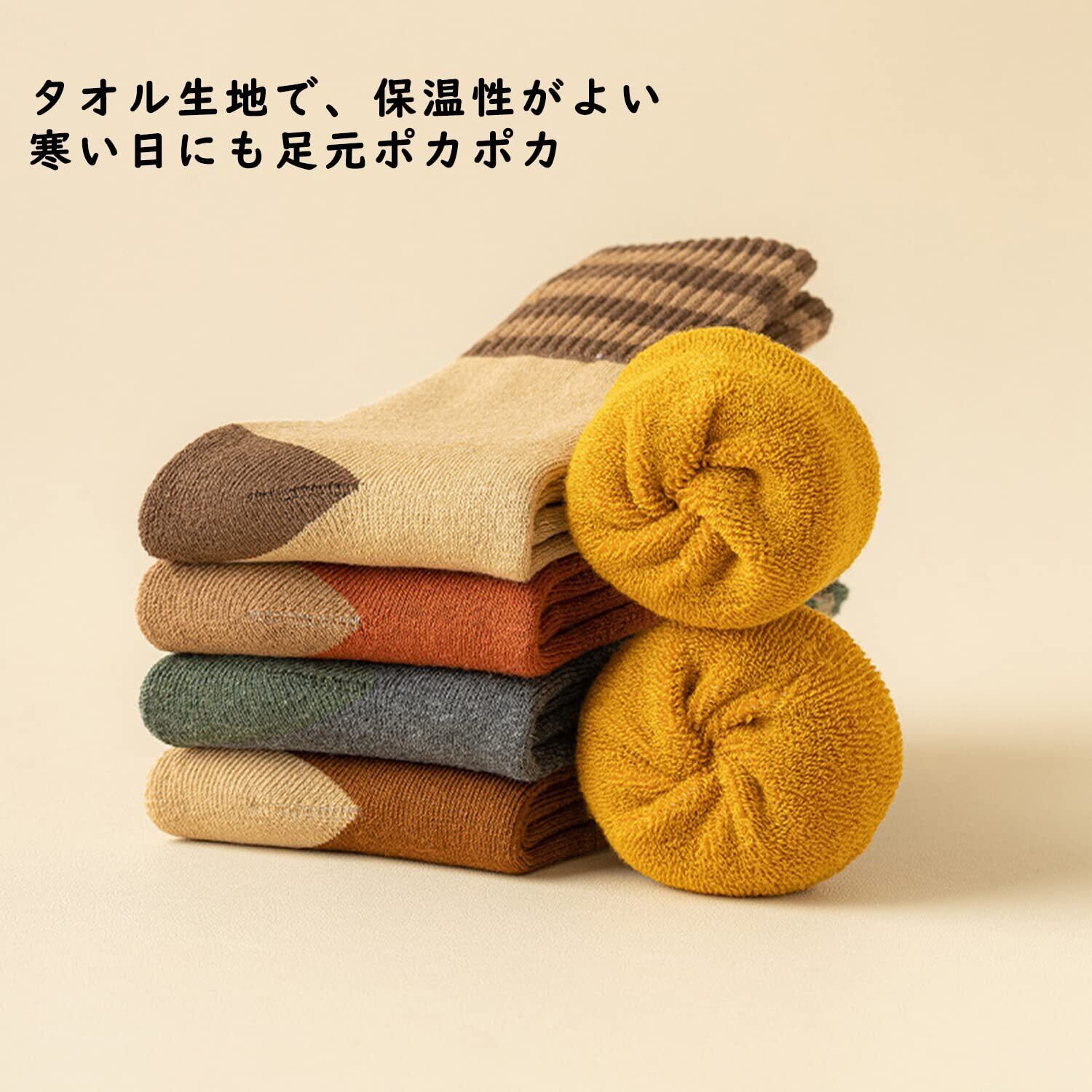 【冬用靴下 レディース 暖かい】メイン素材:ポリエステル、綿 サイズ情報:フリーサイズ 約22-25㎝ ○あったかい靴下 レディース 厚手、内側はタオル生地でふかふかの優しい履き心地です。クッション性が高く、肌触りもバッチリな女性用 防寒靴下です。冬に最適なやや厚めな仕上がりで、靴の中で窮屈にならなく、足元がポカポカ続ける厚手ソックスです。