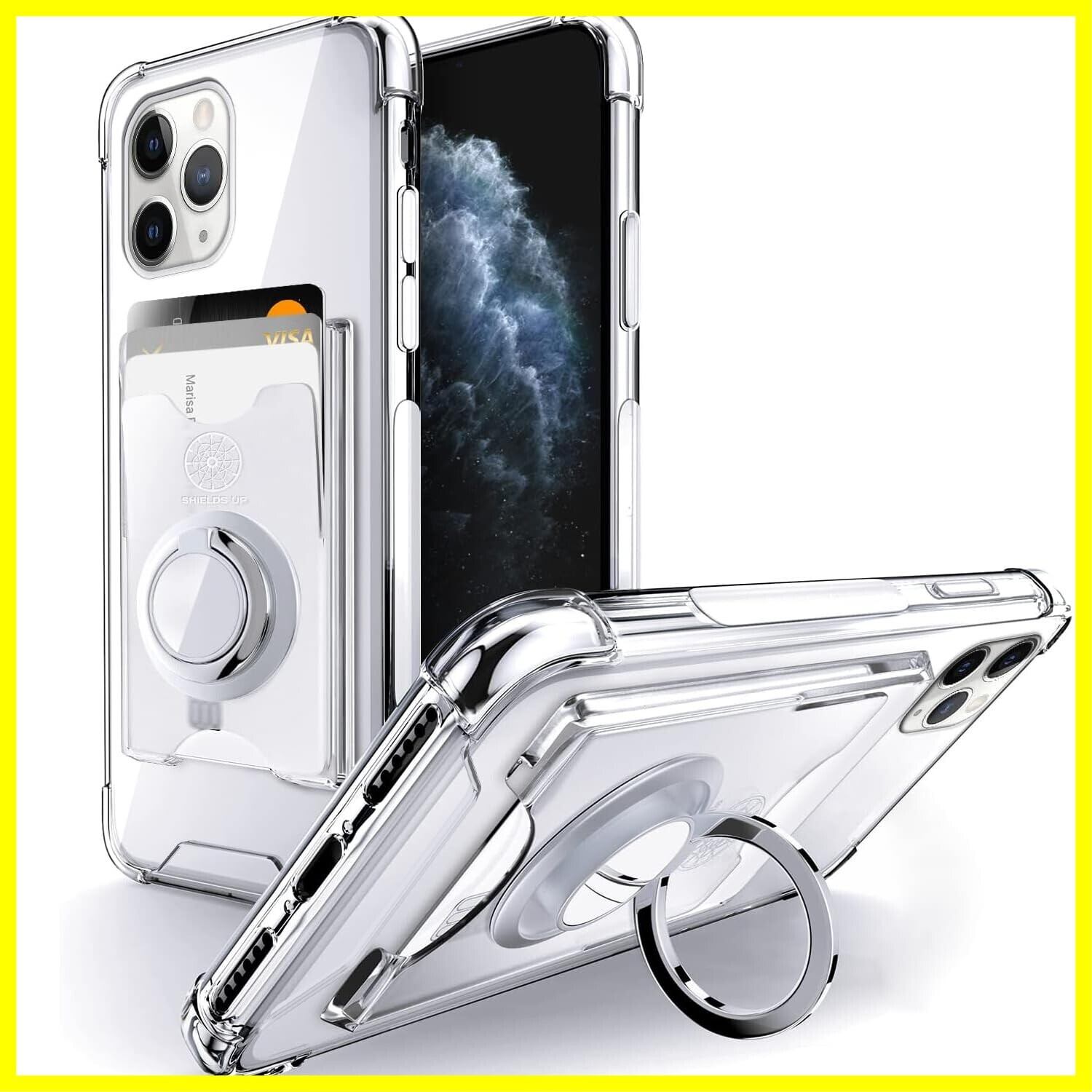 SHIELDS UP 互換品 ケース iPhone 11 Pro 用 ケース カード収納 背面ポケット リング付き スタンド機能 耐衝撃 透明 TPU カバー アイフォン11プロ 用ケース 5.8 インチ - クリア