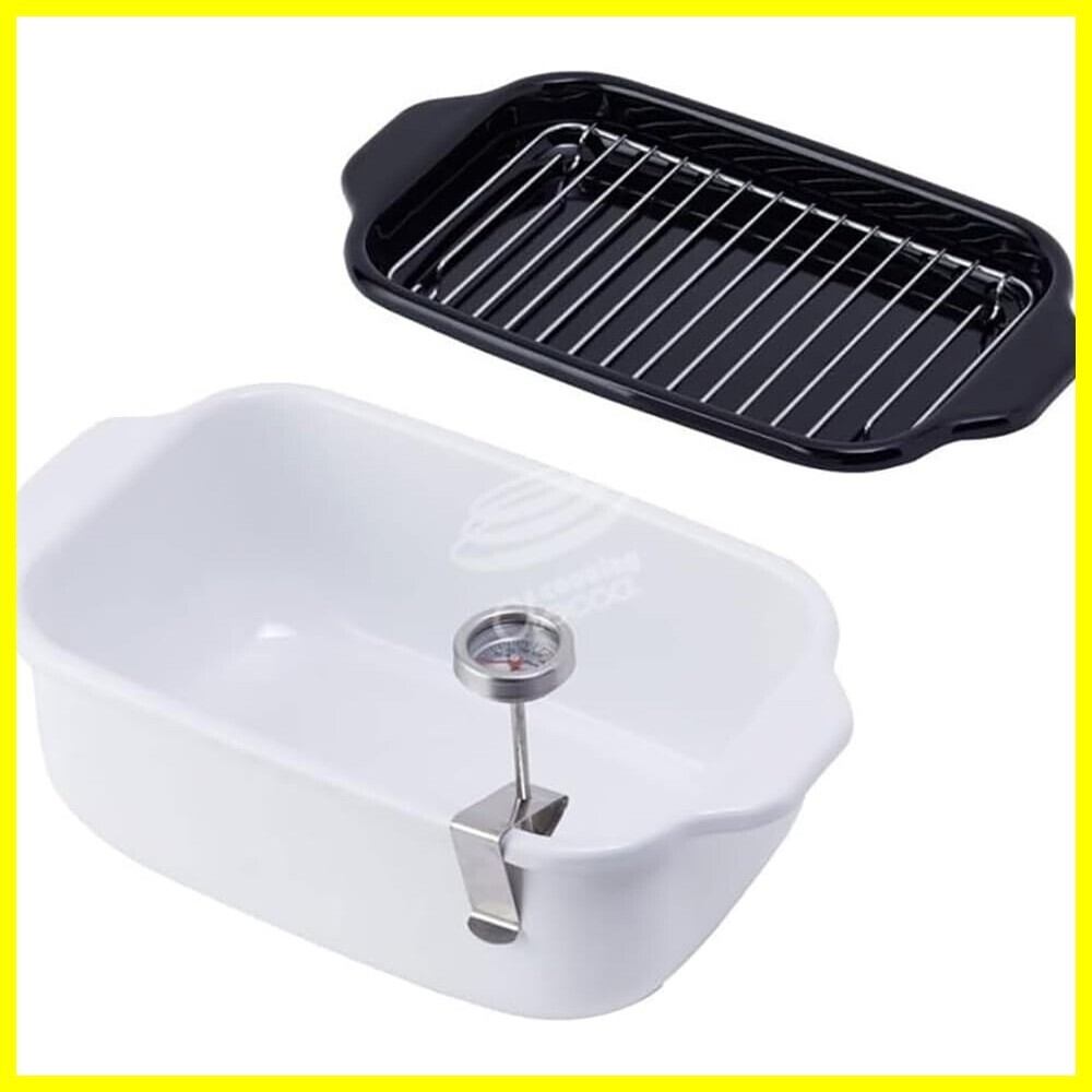 富士ホーロー(Fuji Horo) 天ぷら鍋 ホーロー 角型 温度計付 IH対応 揚げ物 バット スノコ付き ホワイト TP-20K W