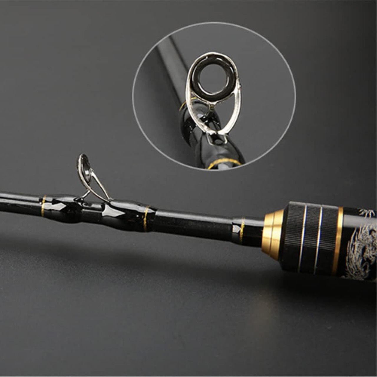 【スタイリッシュな龍柄デザイン!】このロッドは、機能性だけではなく美しさも追求しました。龍柄が施されたデザインは、一目で釣り仲間を惹きつける魅力があります。見た目にもこだわりたい方にぴったりです。