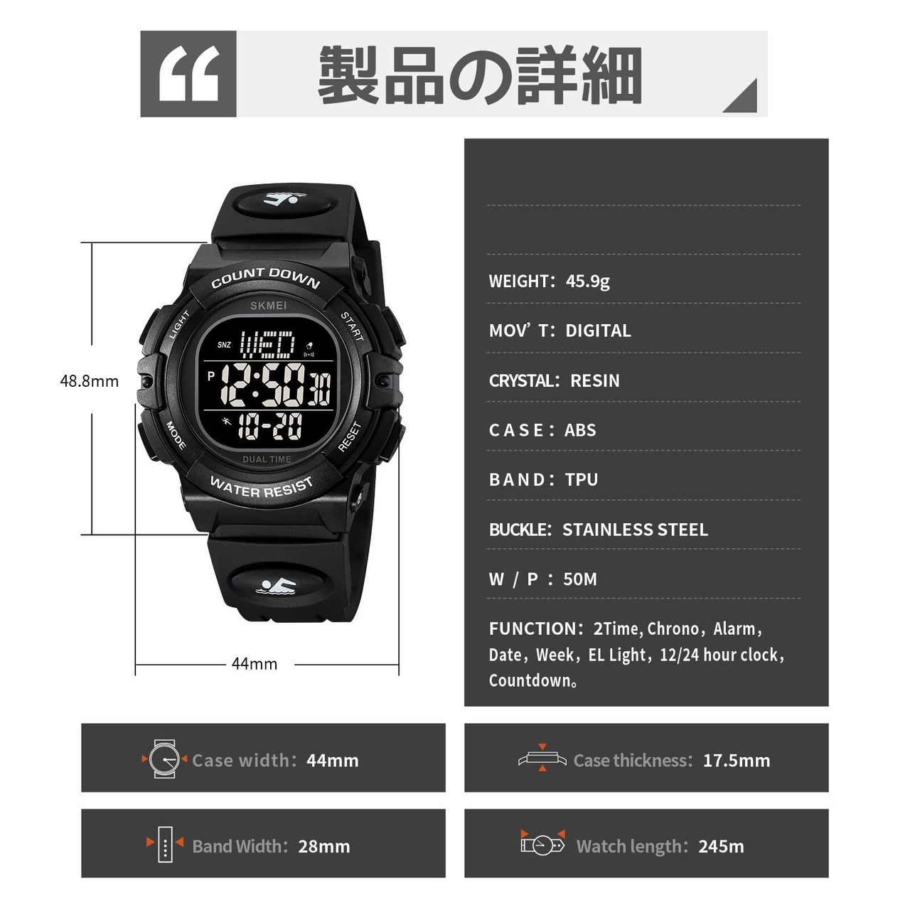 適用シーン:普段使いにふさわしい重すぎない、大画面で楽に使えるスポーツ腕時計、毎日のマラソン、ジョギング、ウォーキングや各種スポーツの練習などにもオススメ。かっこいいデザインで、誕生日、入学式やクリスマスプレゼントにも