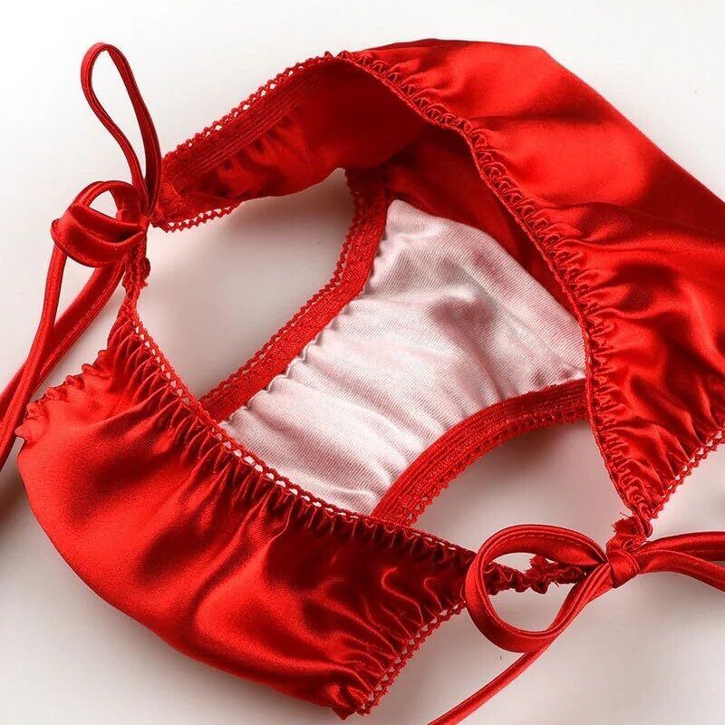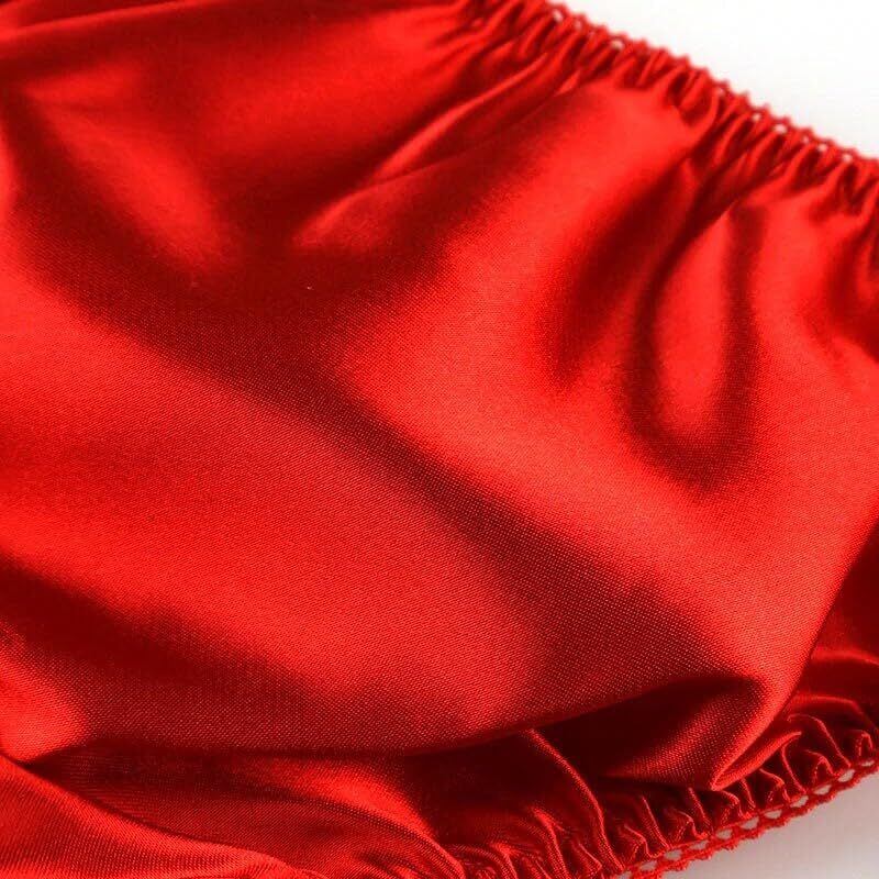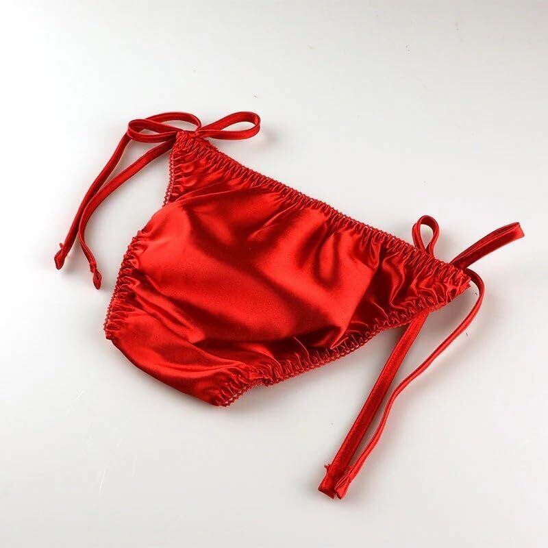 光沢があり艶やかで滑らかなシルクの様な肌触りの良い生地。シンプルなデザインで普段着用にも最適な脇ヒモフルバックショーツ。