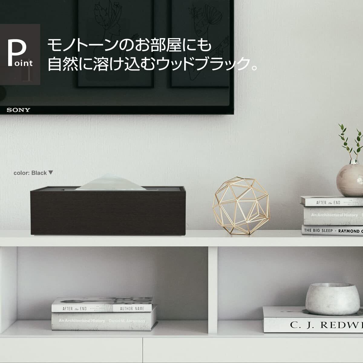 シンプルスクエア×モダンウッド。コーディネートで選ぶティッシュケース。●木目が映える上質感。ブラック色のカバーが小粋なコントラストに。北欧テイストの心地よさ。 木の心地よさが伝わる、すべてが木合板製のティッシュケースです。合板とは思えない美しい木質感。シンプルで端正なデザインは、どこに置いても絵になる存在。お部屋にウッディなアクセントを添える感覚でお使い頂けます。