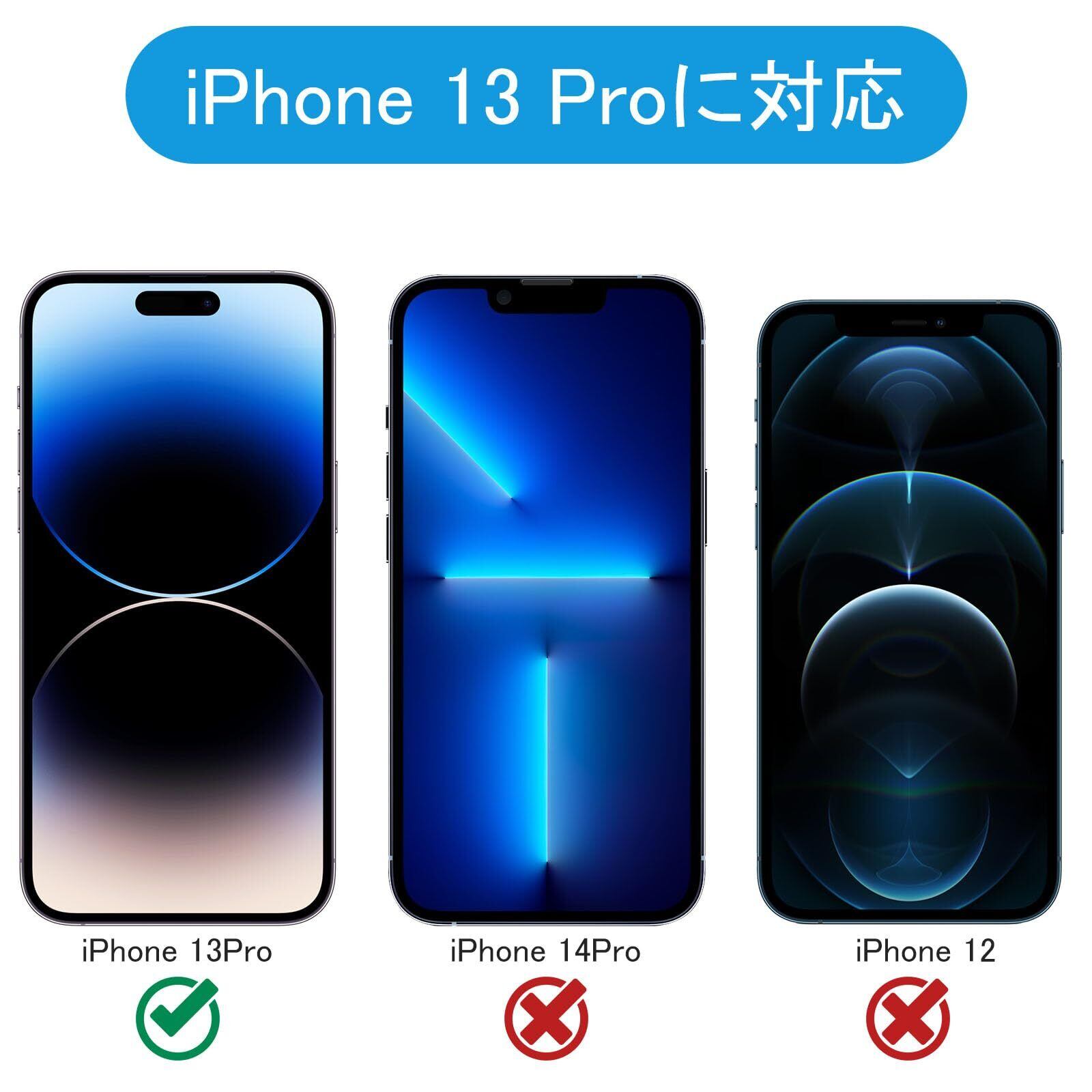 対応機種:iPhone 13 Pro用 (三眼、6.1インチ)。精確にカット加工しているので、ポートやボタンが使いやすく、機能性に影響しません。※購入前に対応機種をご確認よろしくお願いいたします。